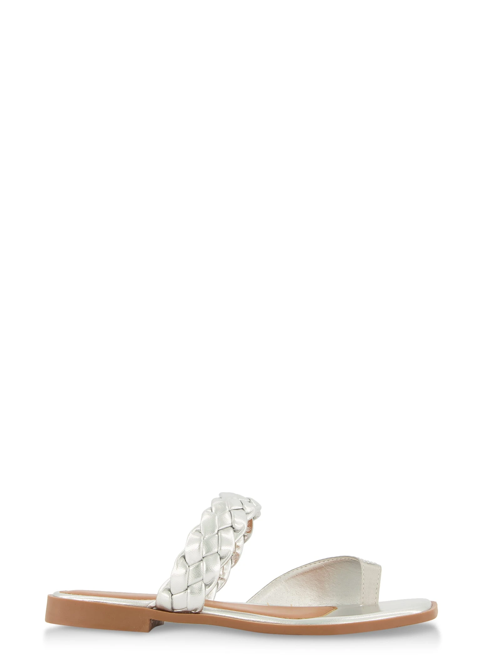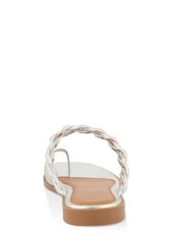 Rhinestone Toe Loop Braided Band Slide Sandals – SILVER