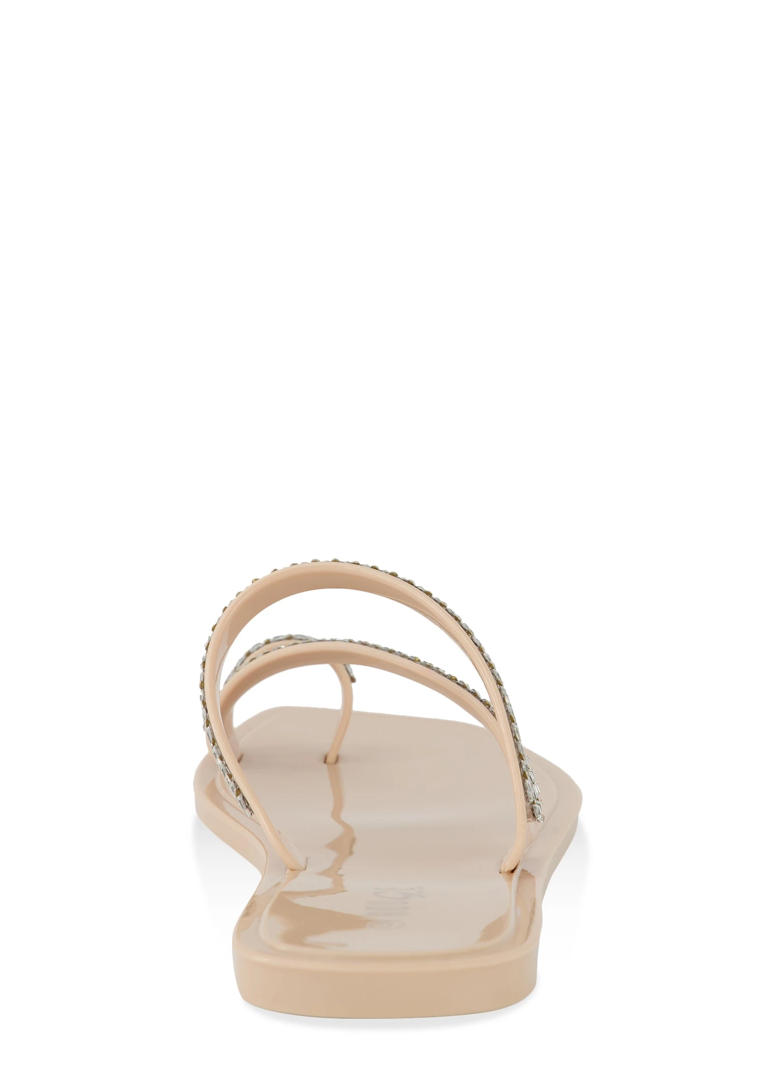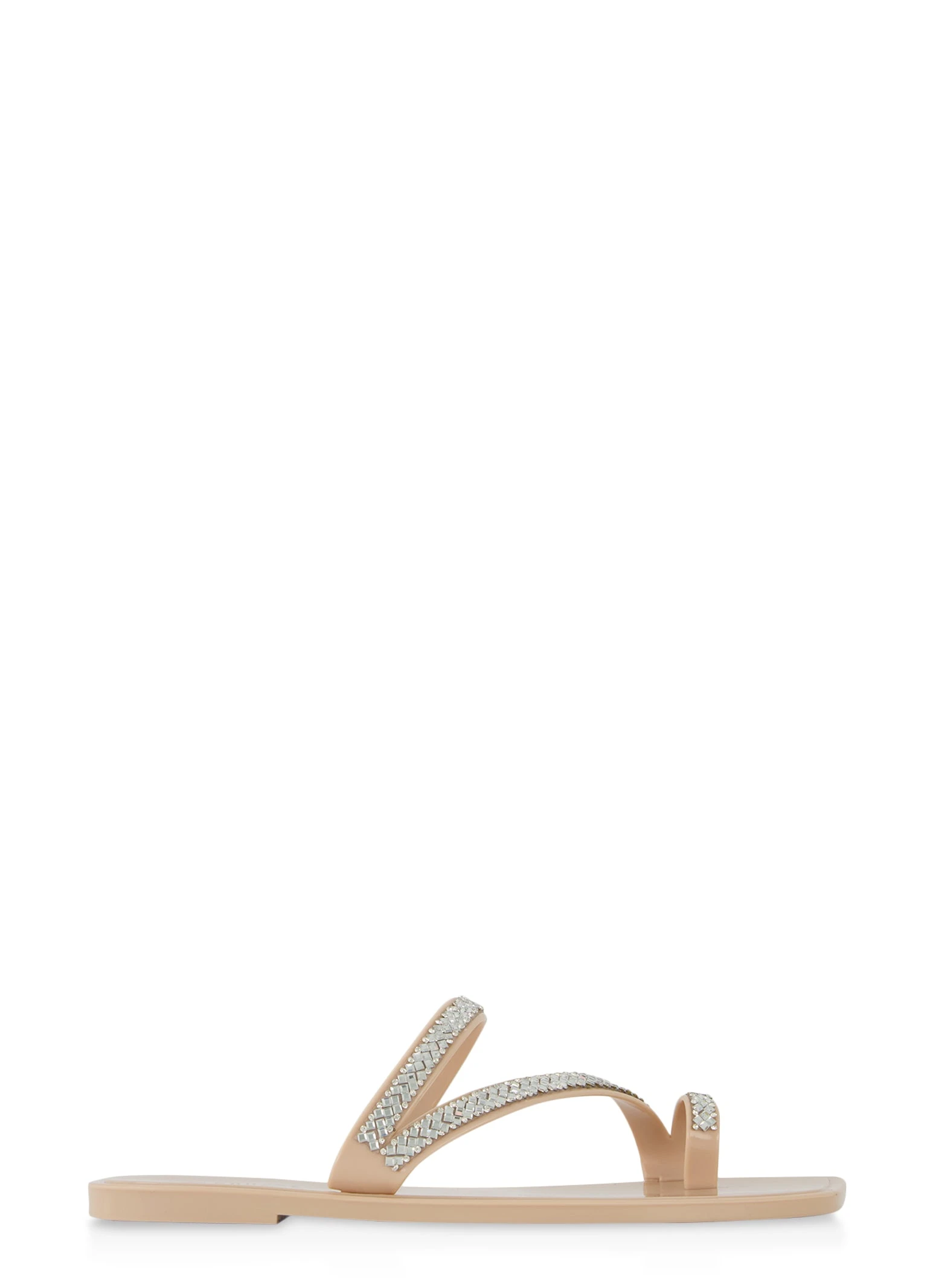 Rhinestone Toe Loop Slide Sandals – NUDE
