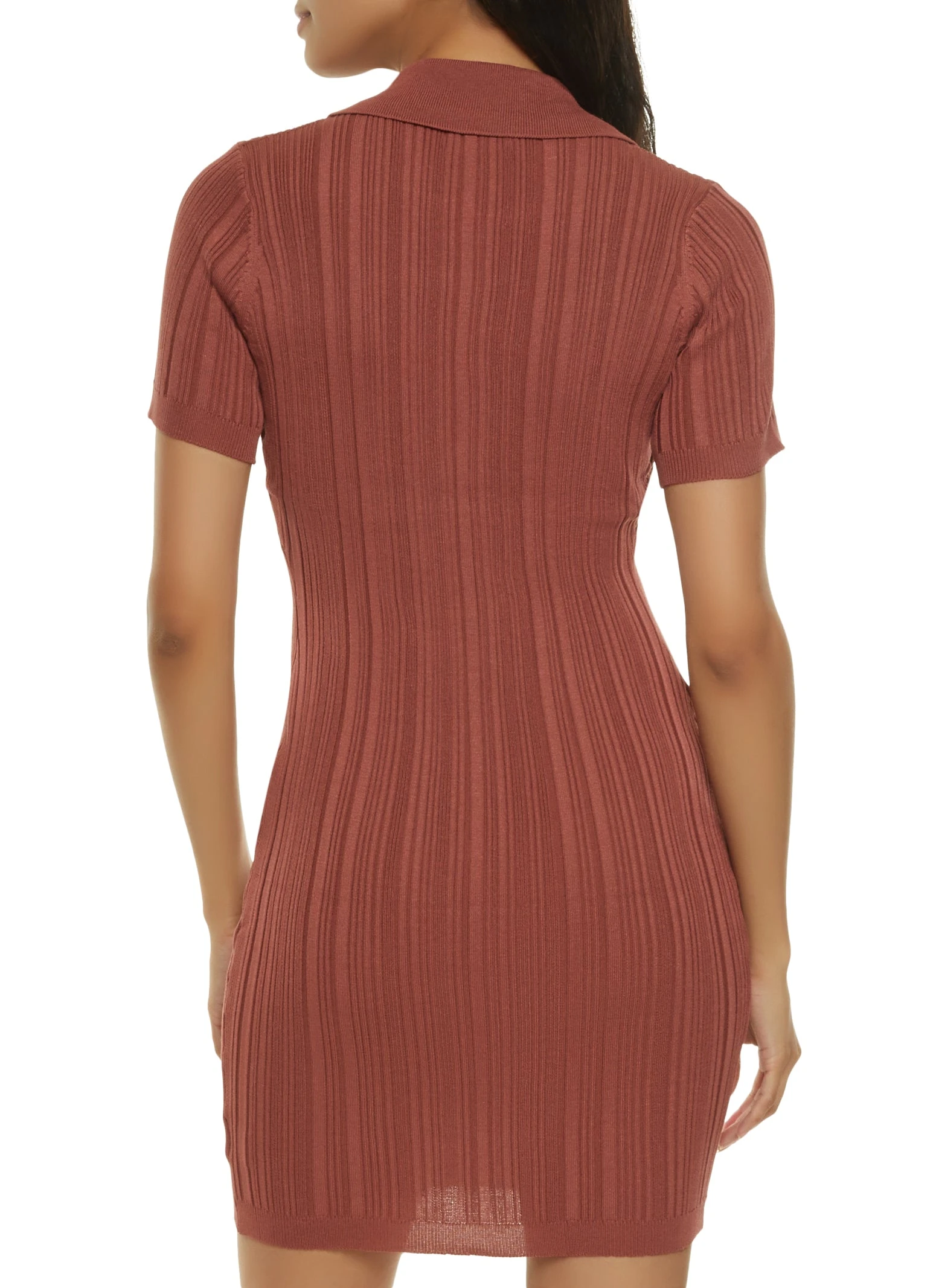 Ribbed Button Front Shirt Dress – WINE