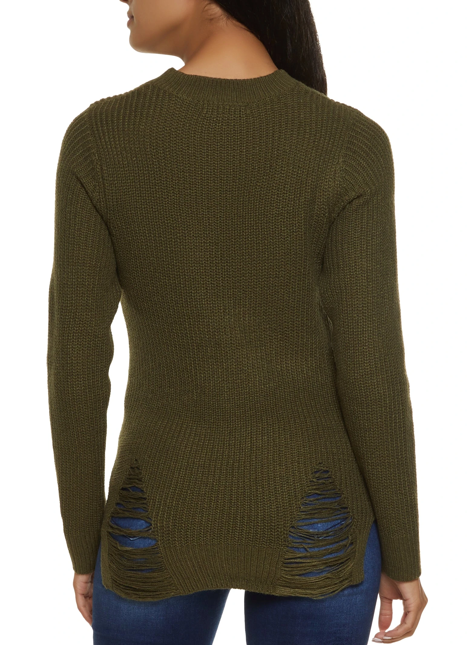 Ribbed Knit Distressed Pullover Sweater – OLIVE