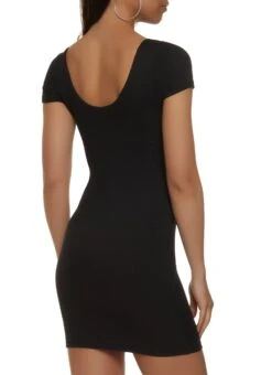 Ribbed Scoop Neck T Shirt Dress – BLACK