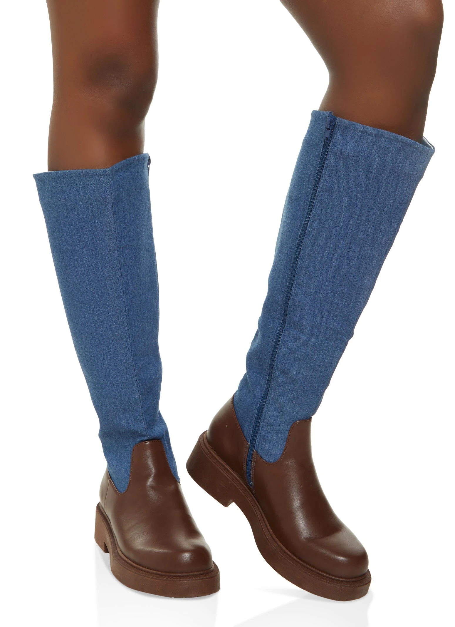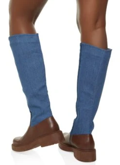 Round Toe Color Block Tall Boots – DENIM