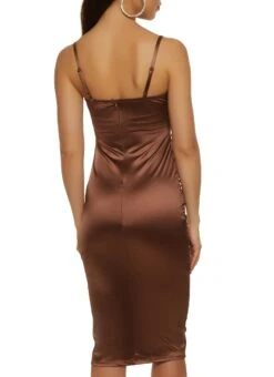 Satin Ruched Side Midi Dress – MOCHA