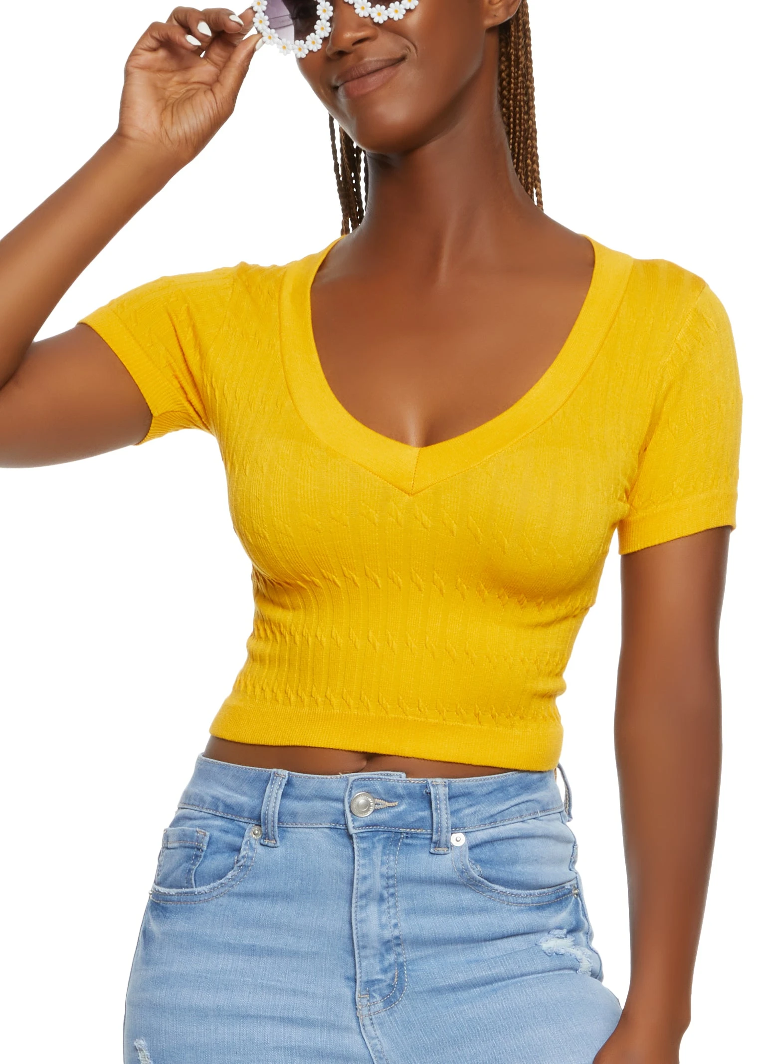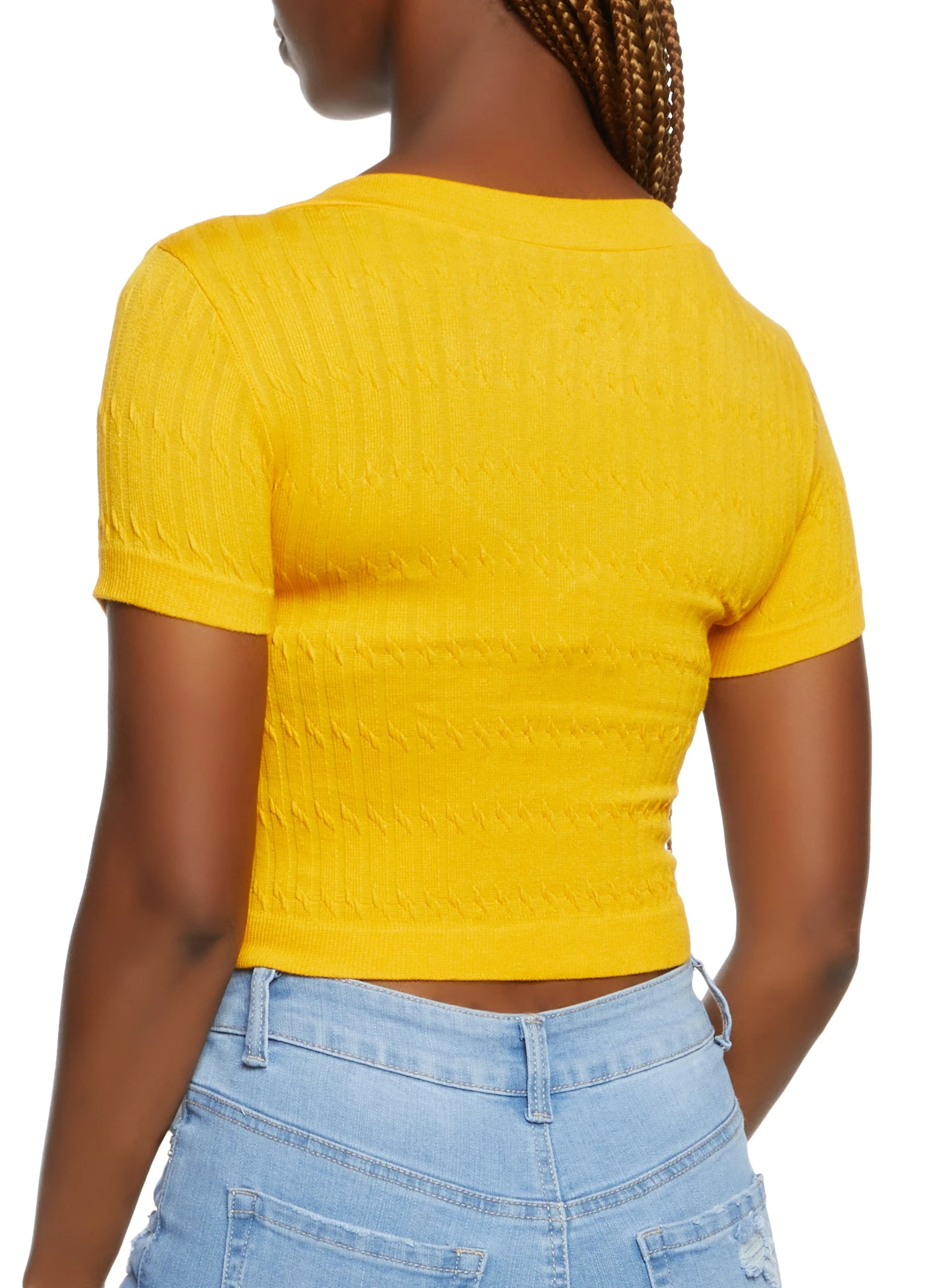 Seamless Cable Knit V Neck Crop Top – YELLOW