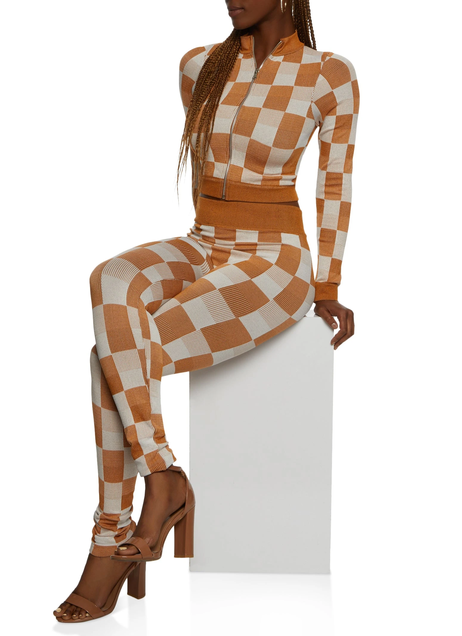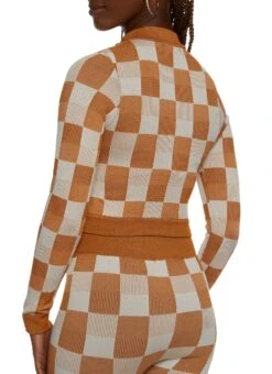 Seamless Checkered Print Track Jacket – RUST