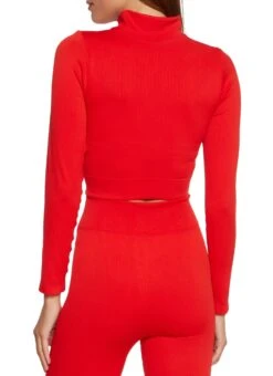Seamless Compression Rib Half Zip Crop Top – RED