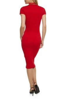 Seamless Mock Neck Midi Bodycon Dress – RED