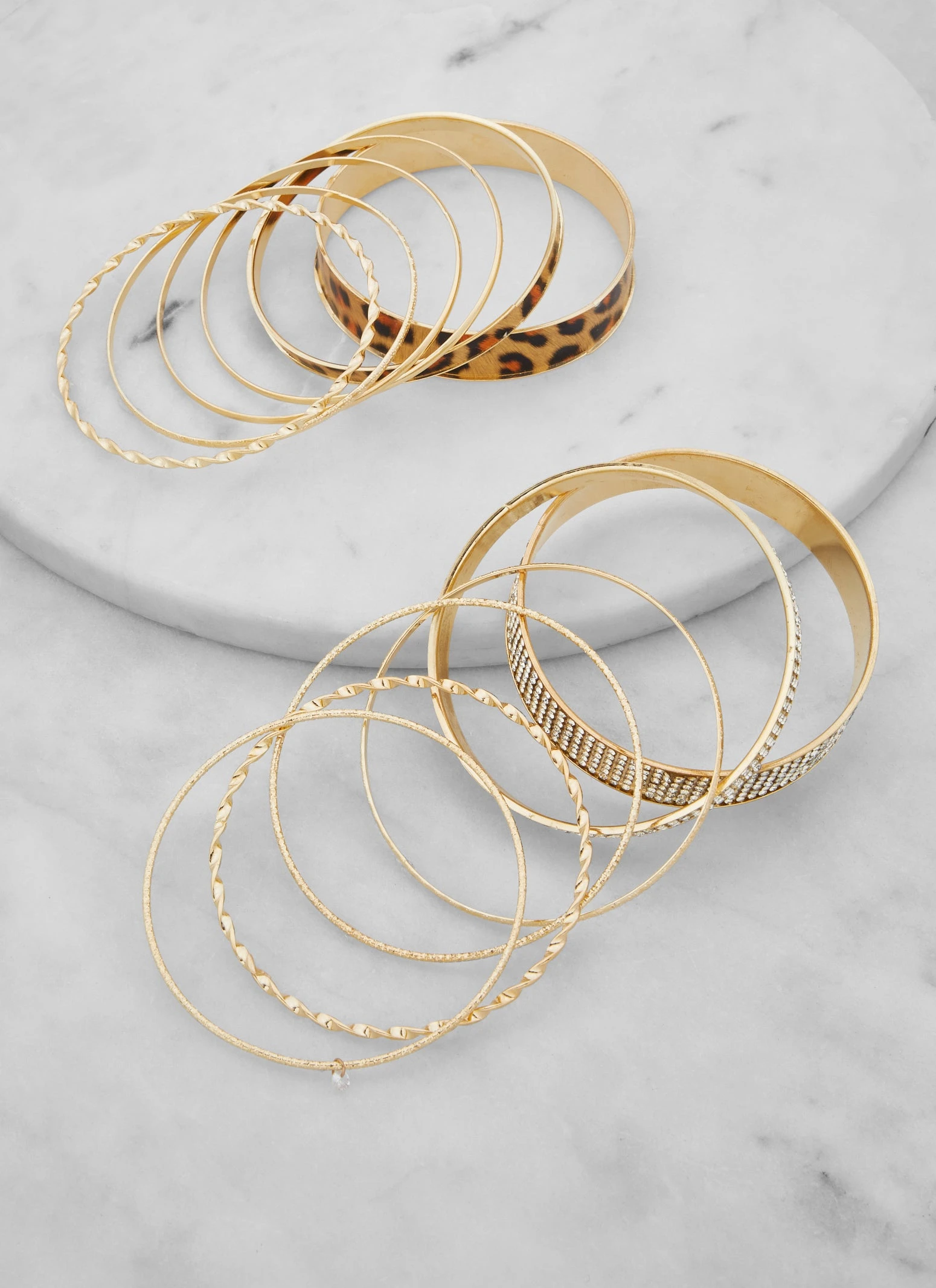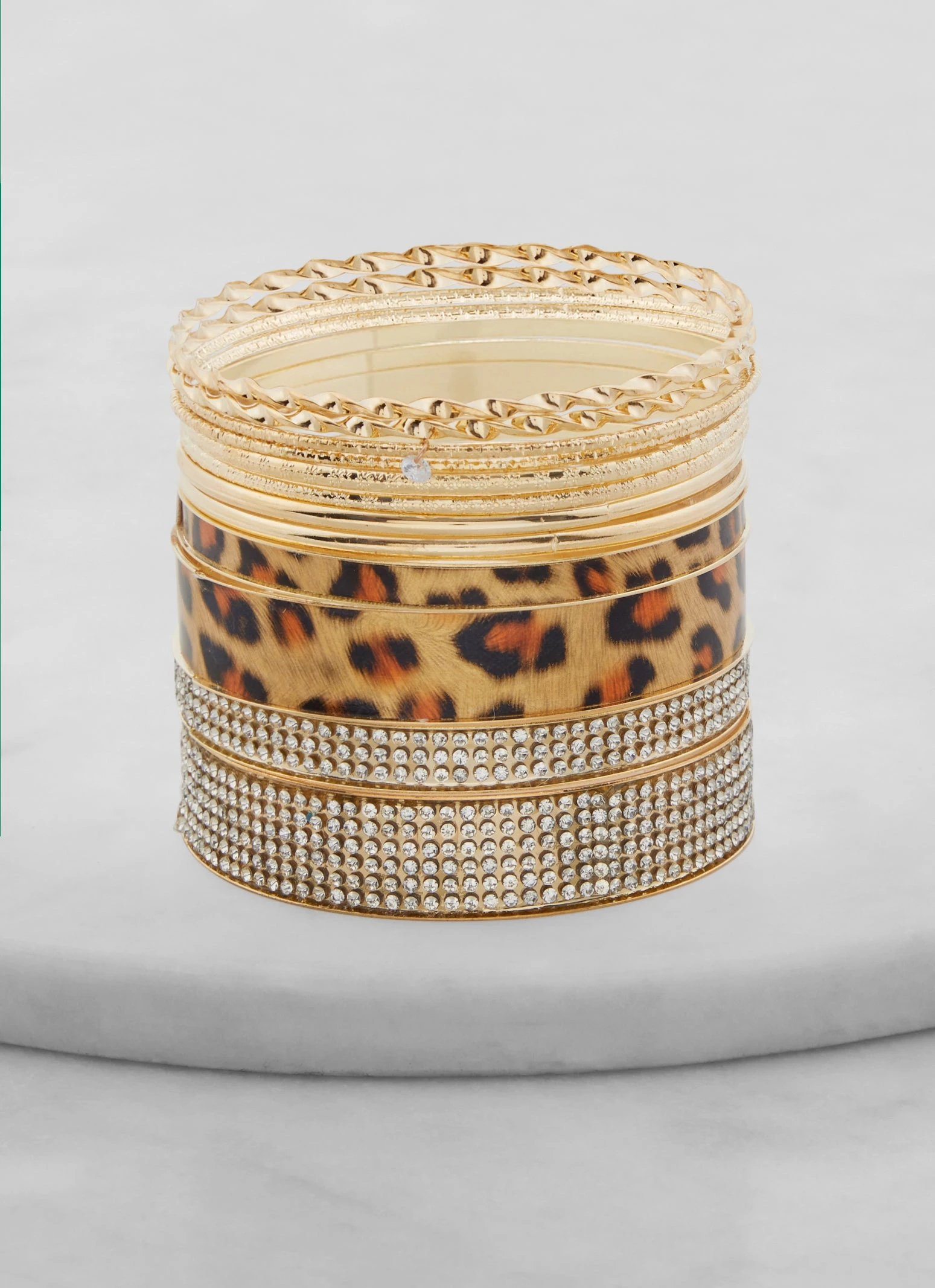 Set of 12 Animal Print Rhinestone Metallic Bangles – GOLD