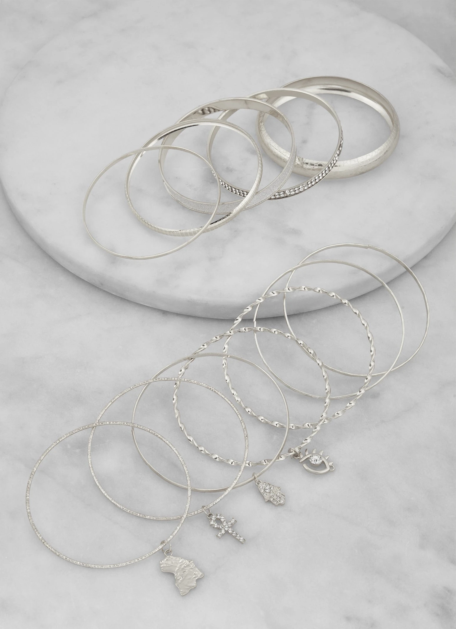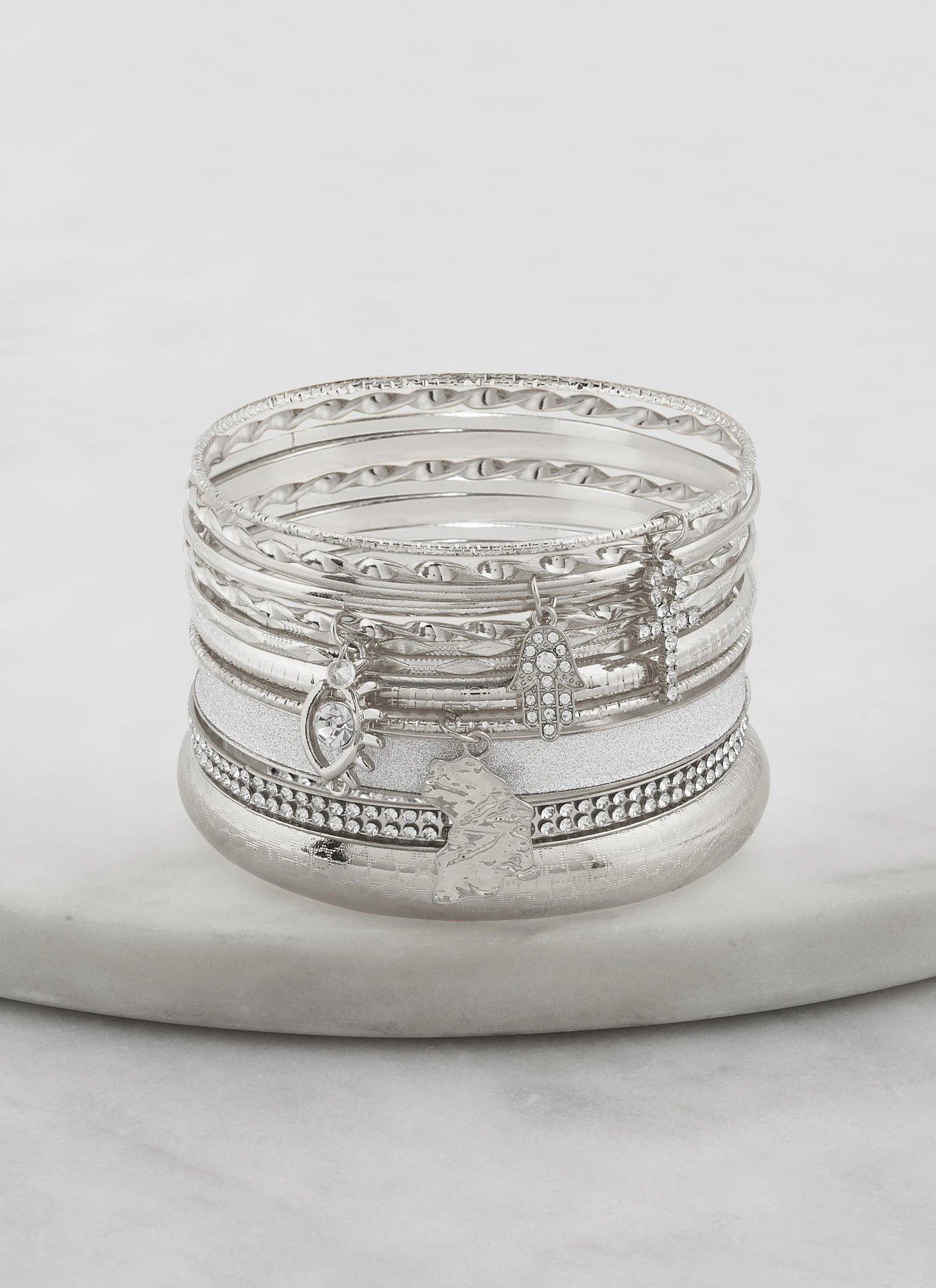 Set of 12 Hamsa Hand Rhinestone Charm Bangles – SILVER