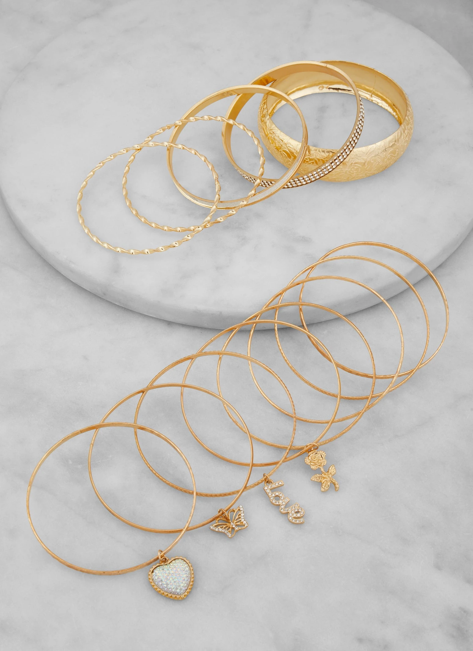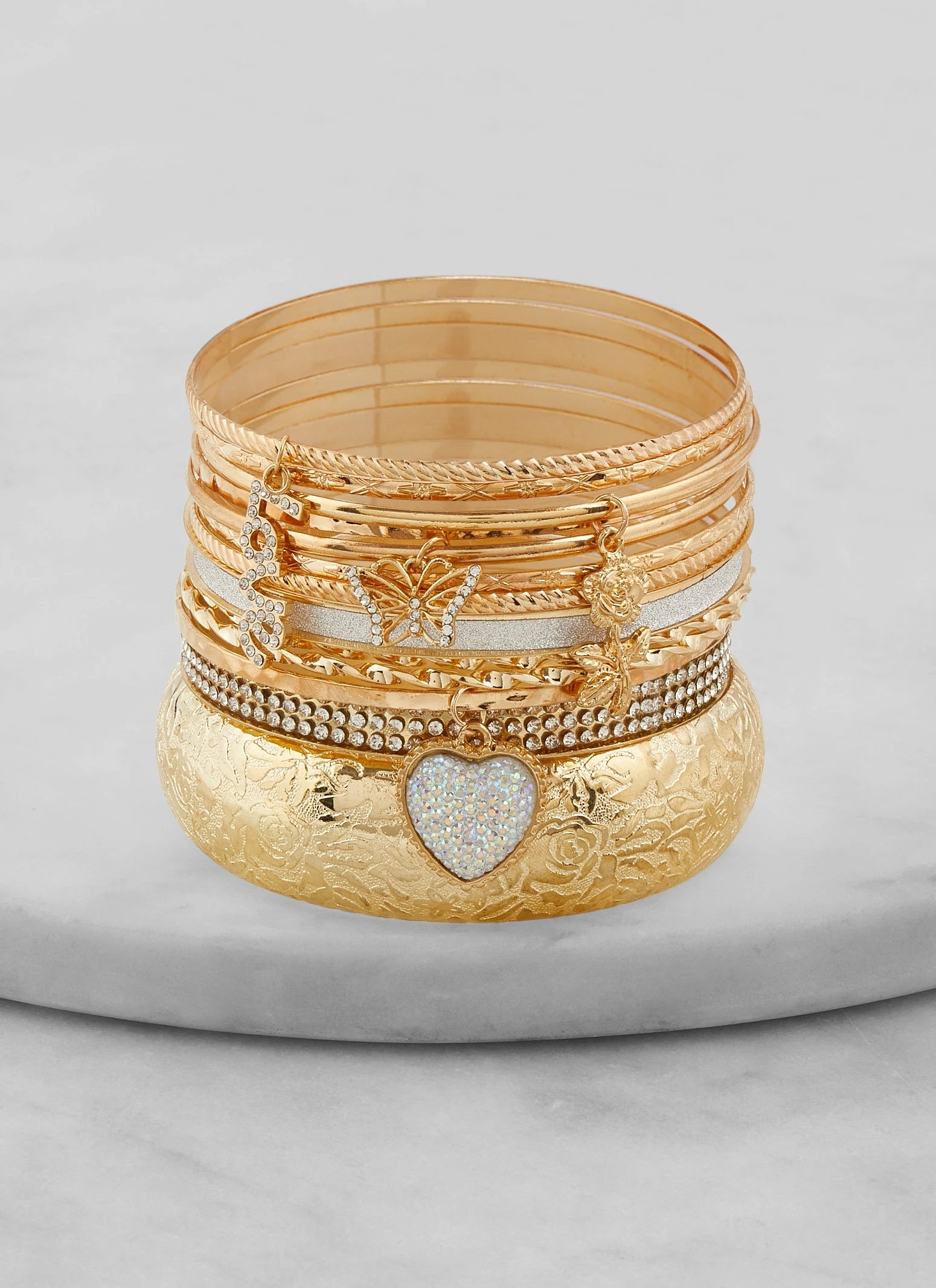 Set of 13 Rhinestone Charm Metallic Bangles – GOLD