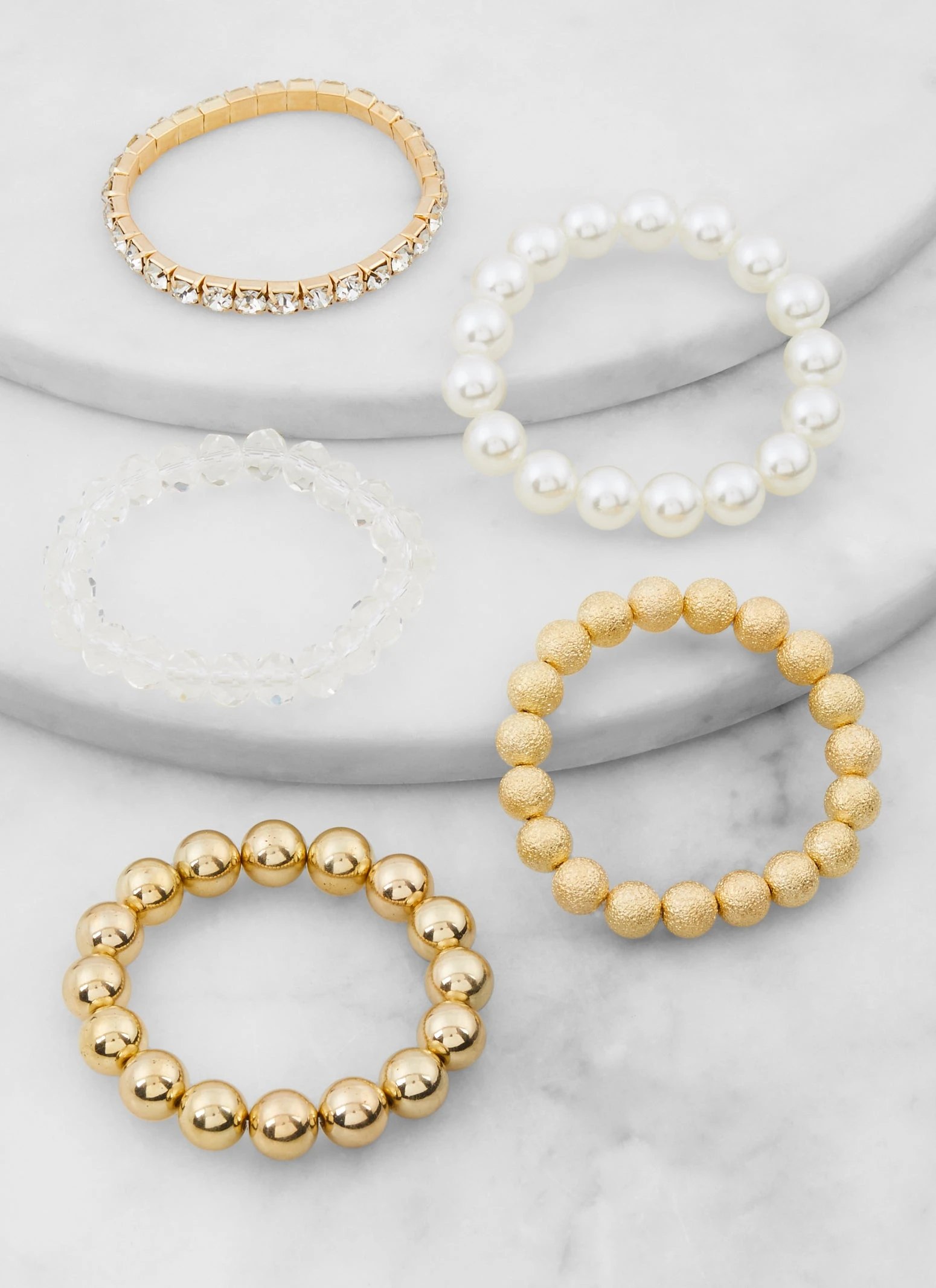 Set of 5 Assorted Beaded Stretch Bracelets – GOLD
