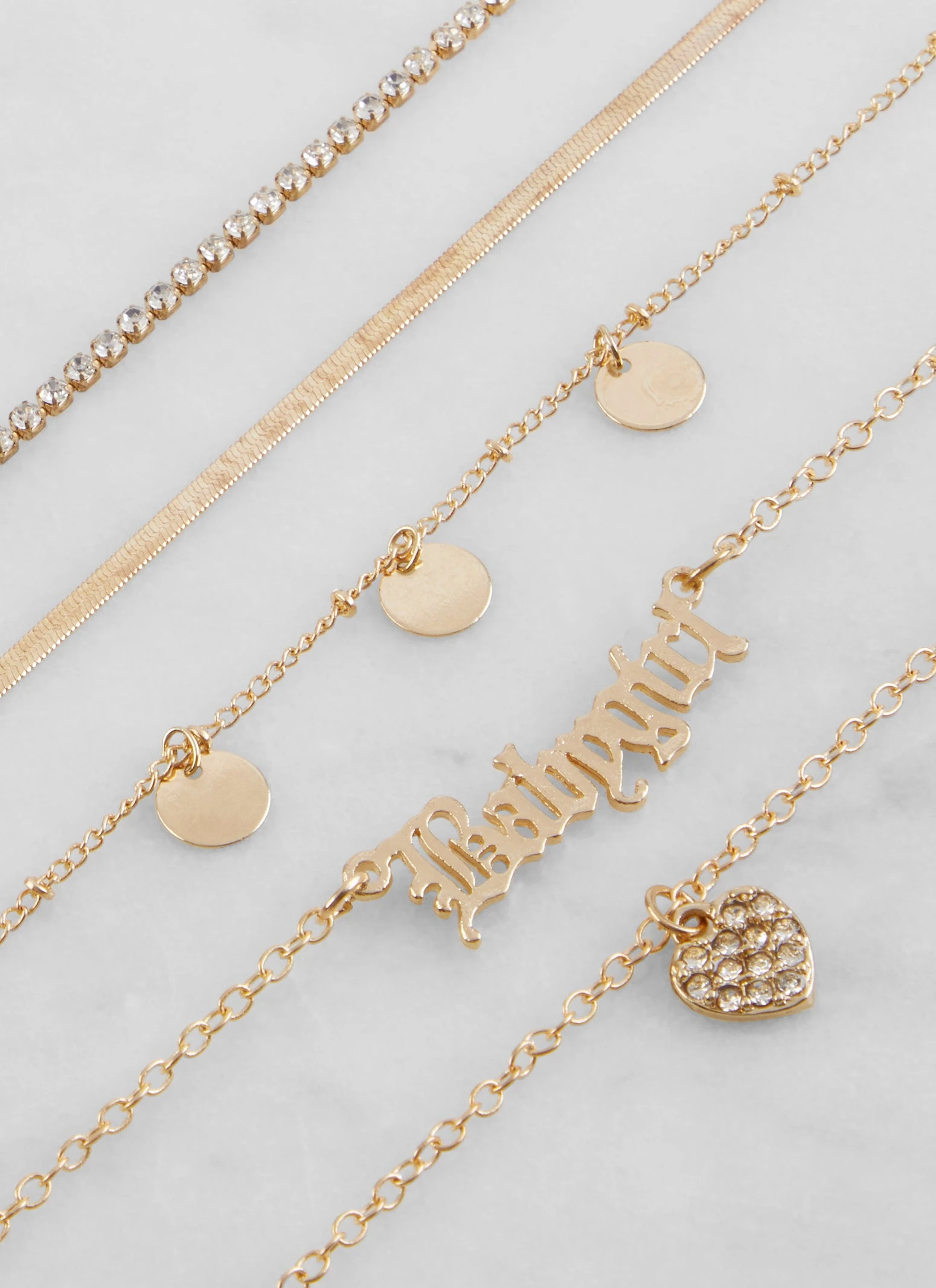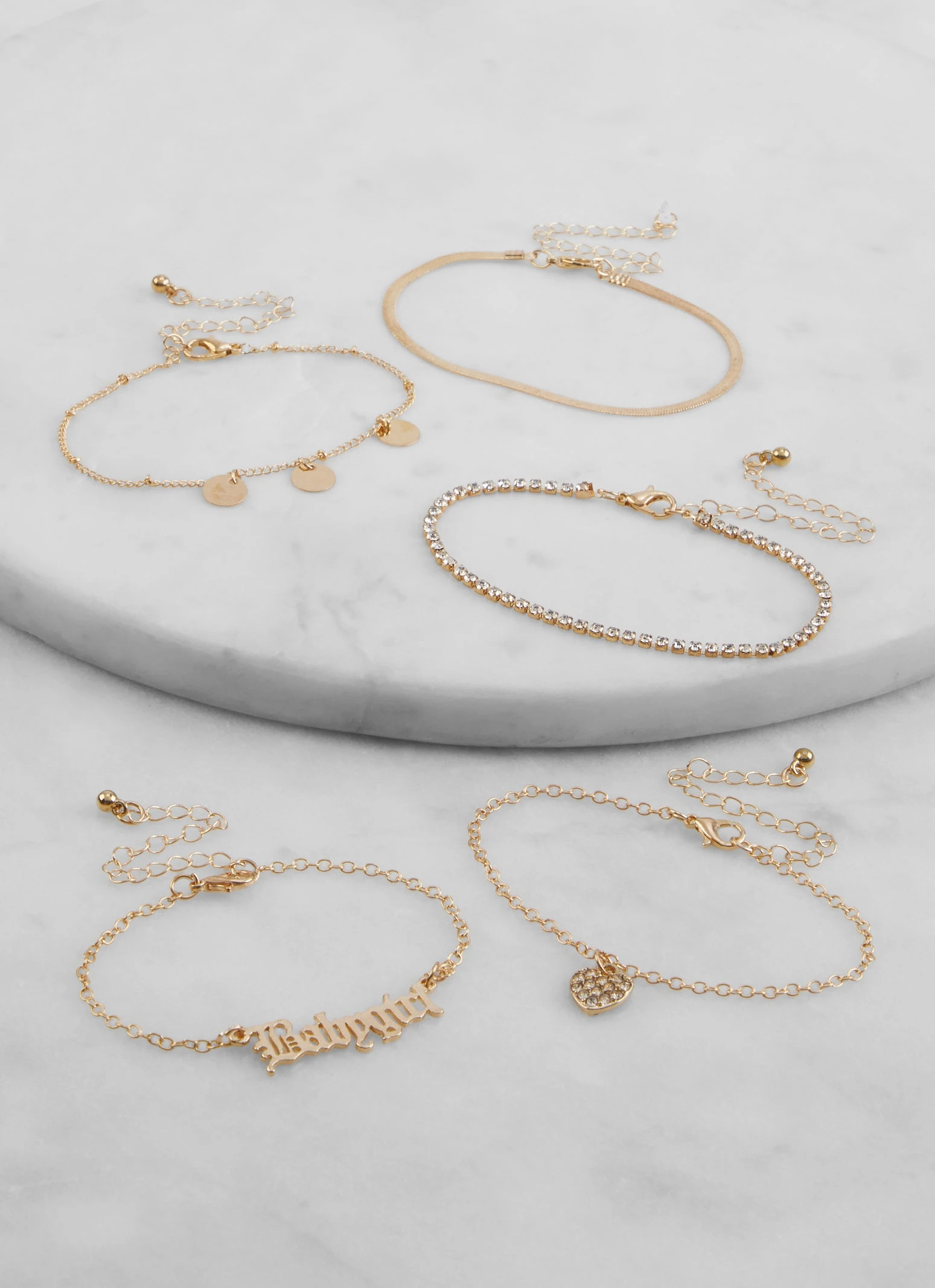 Set of 5 Babygirl Rhinestone Charm Bracelets – GOLD