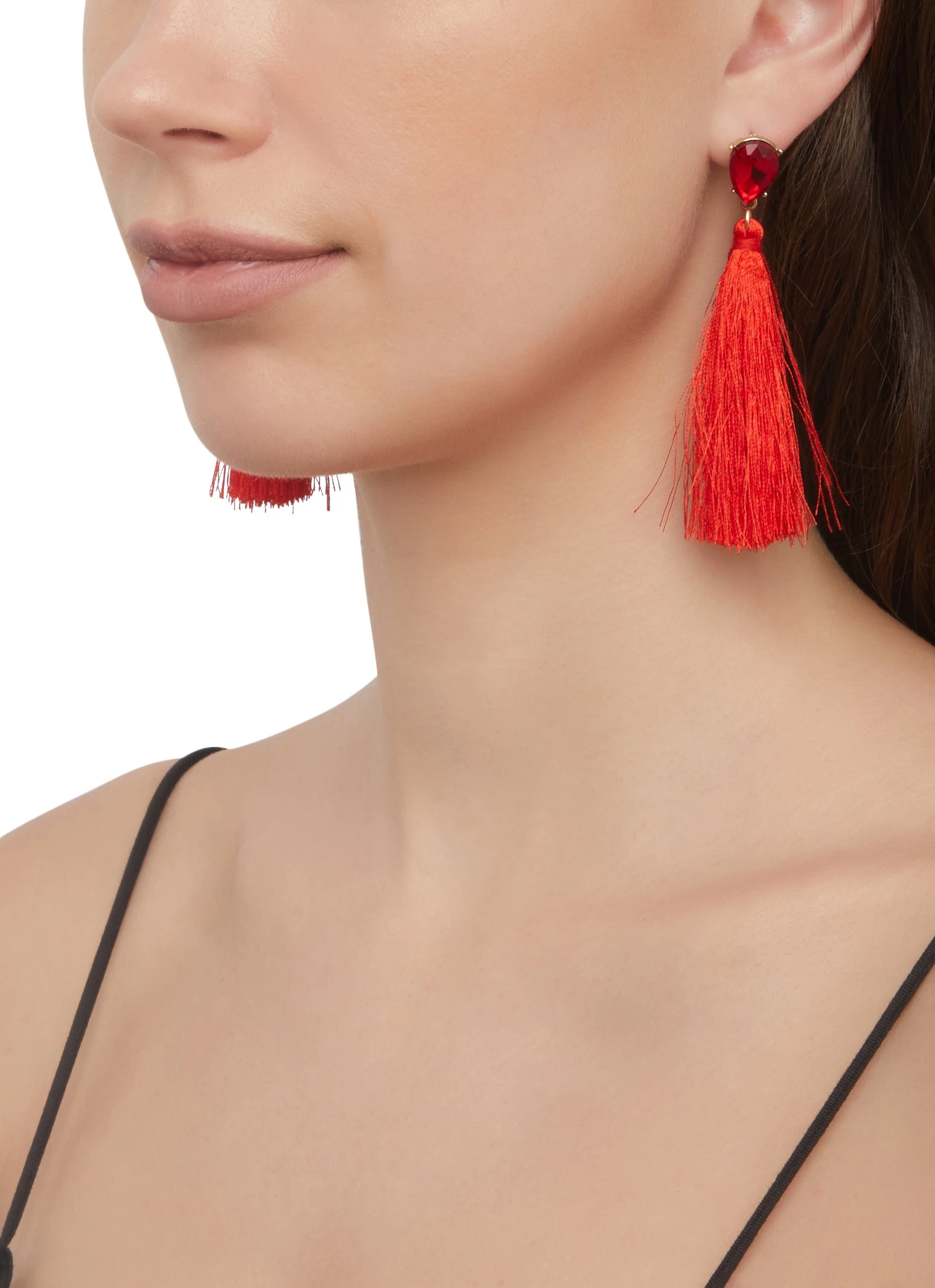 Set of 6 Rhinestone Stud and Tassel Earrings – RED