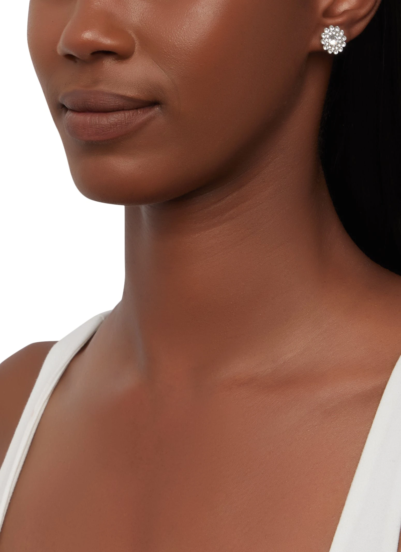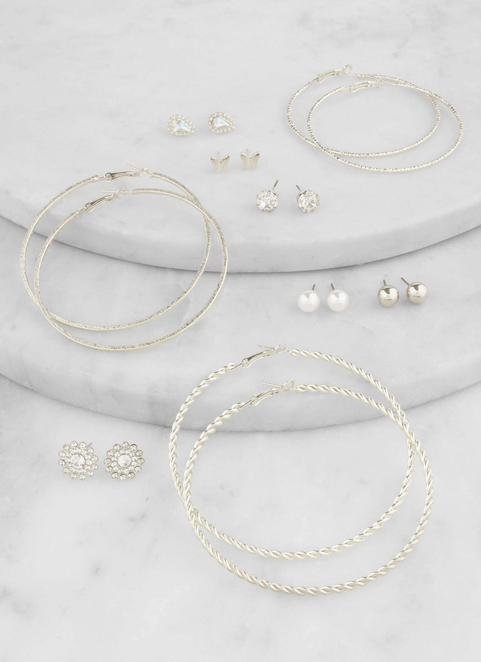 Set Of 9 Rhinestone Stud and Textured Hoop Earrings – SILVER