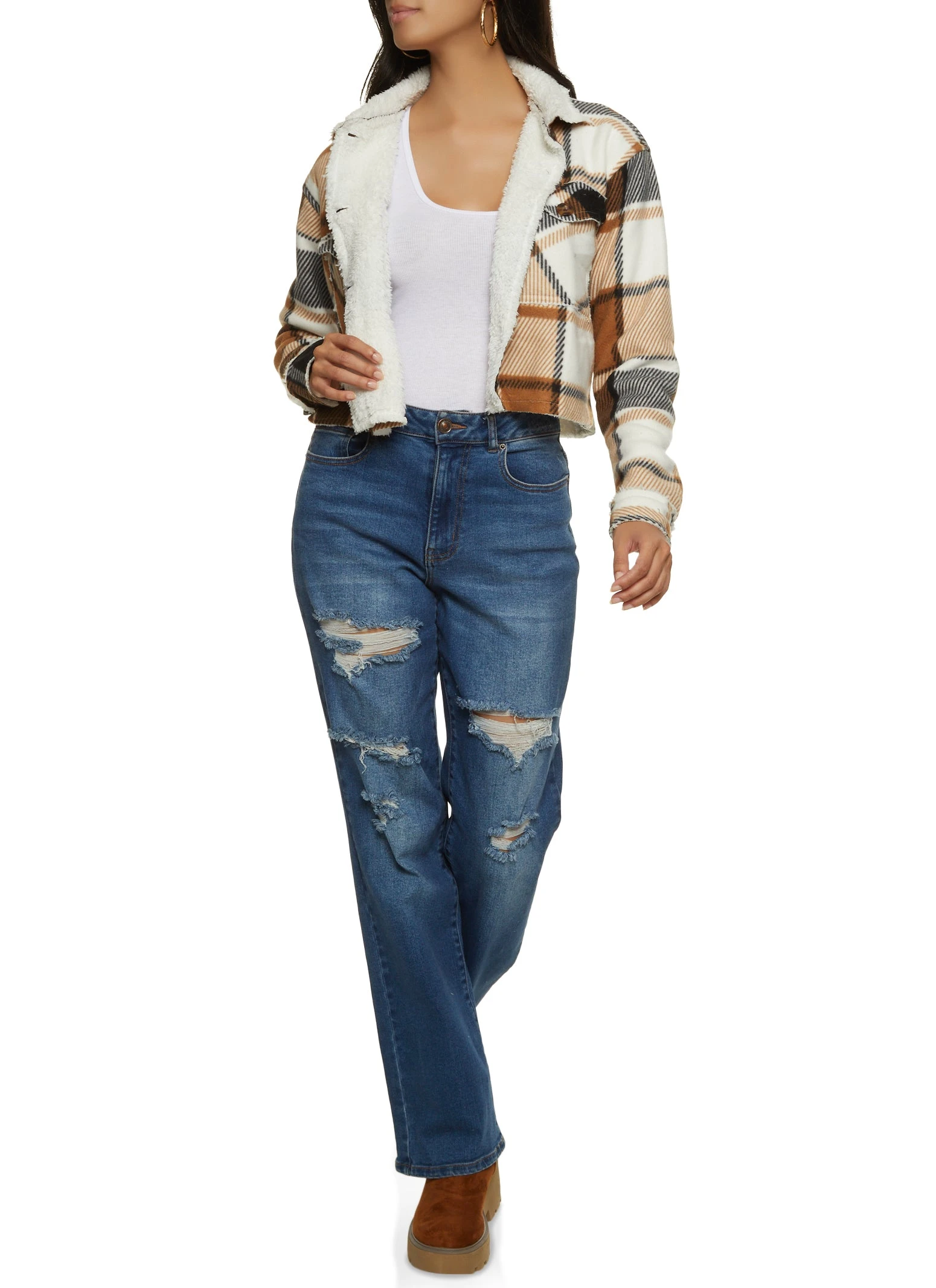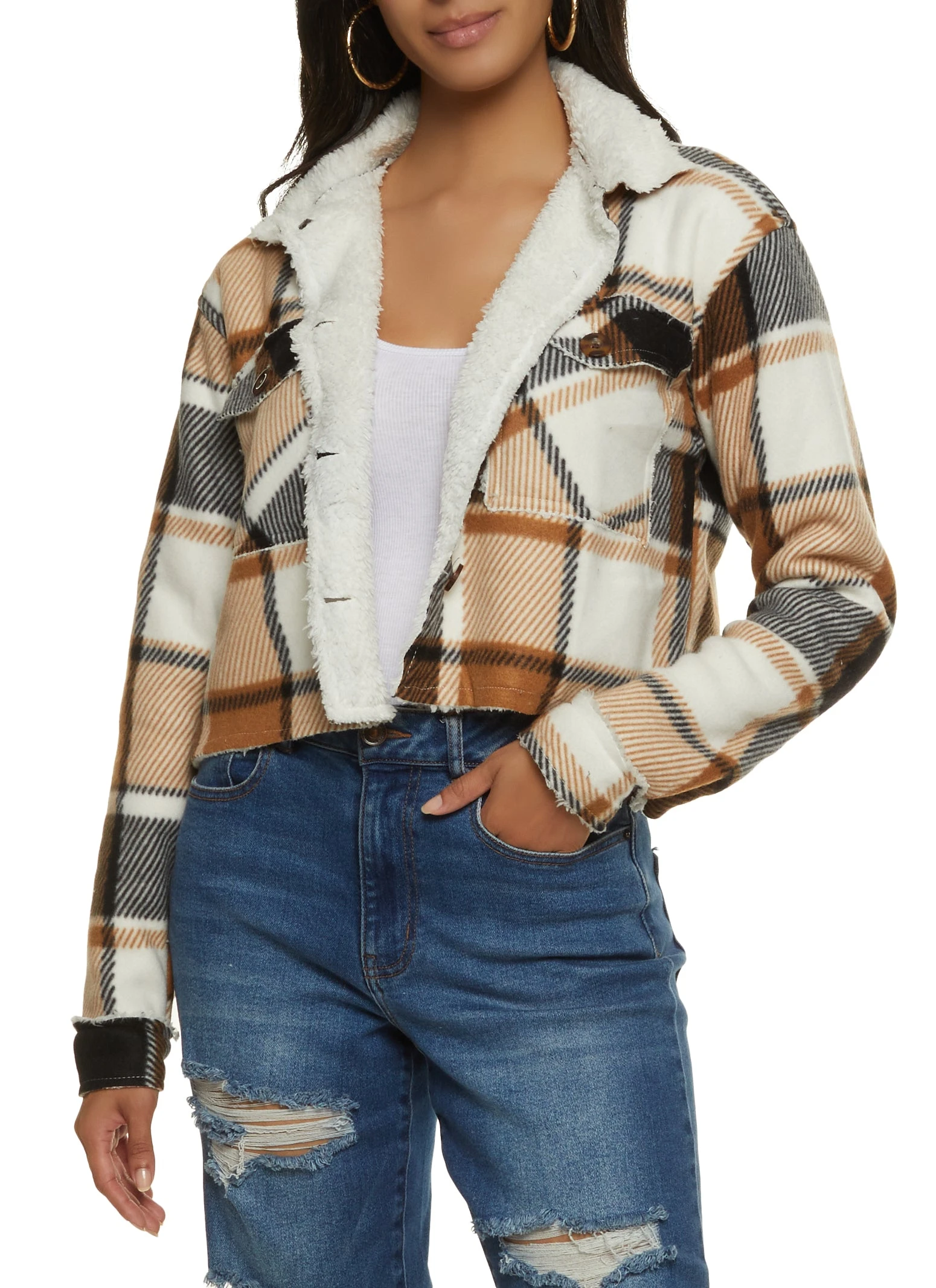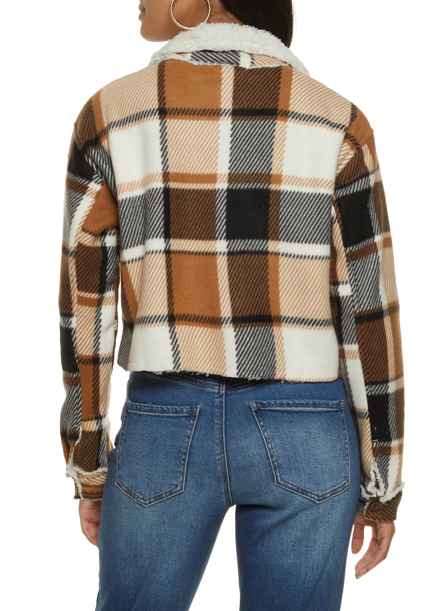 Sherpa Lined Plaid Cropped Jacket – WHITE