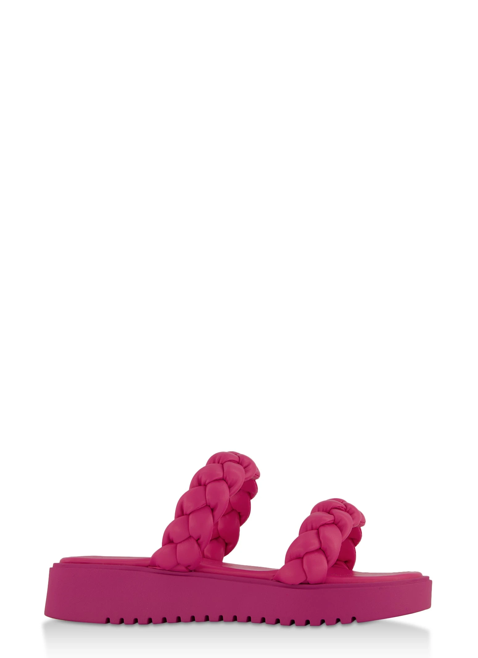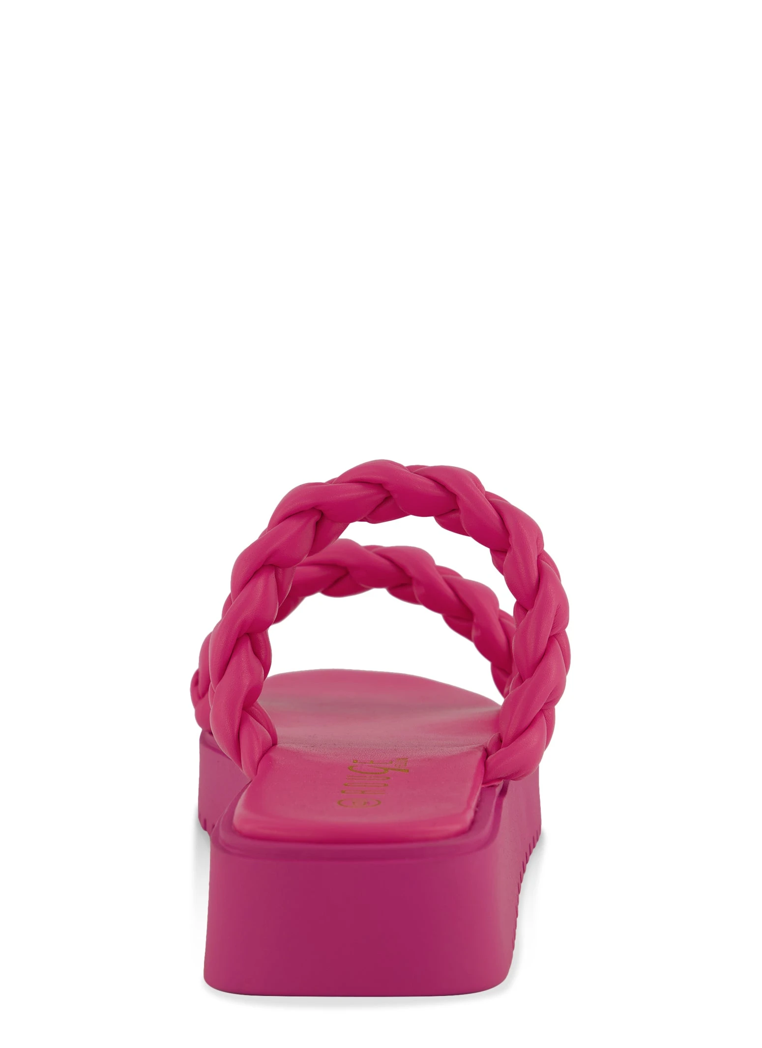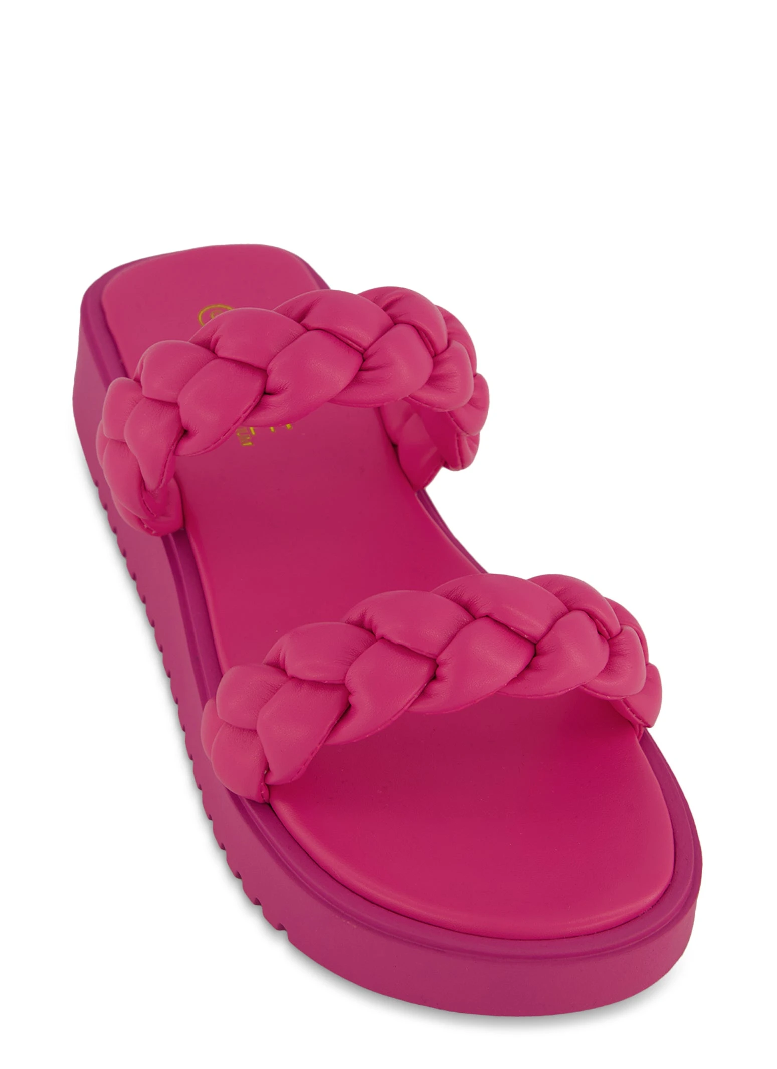 Solid Double Braided Band Slide Sandals – NEON PINK