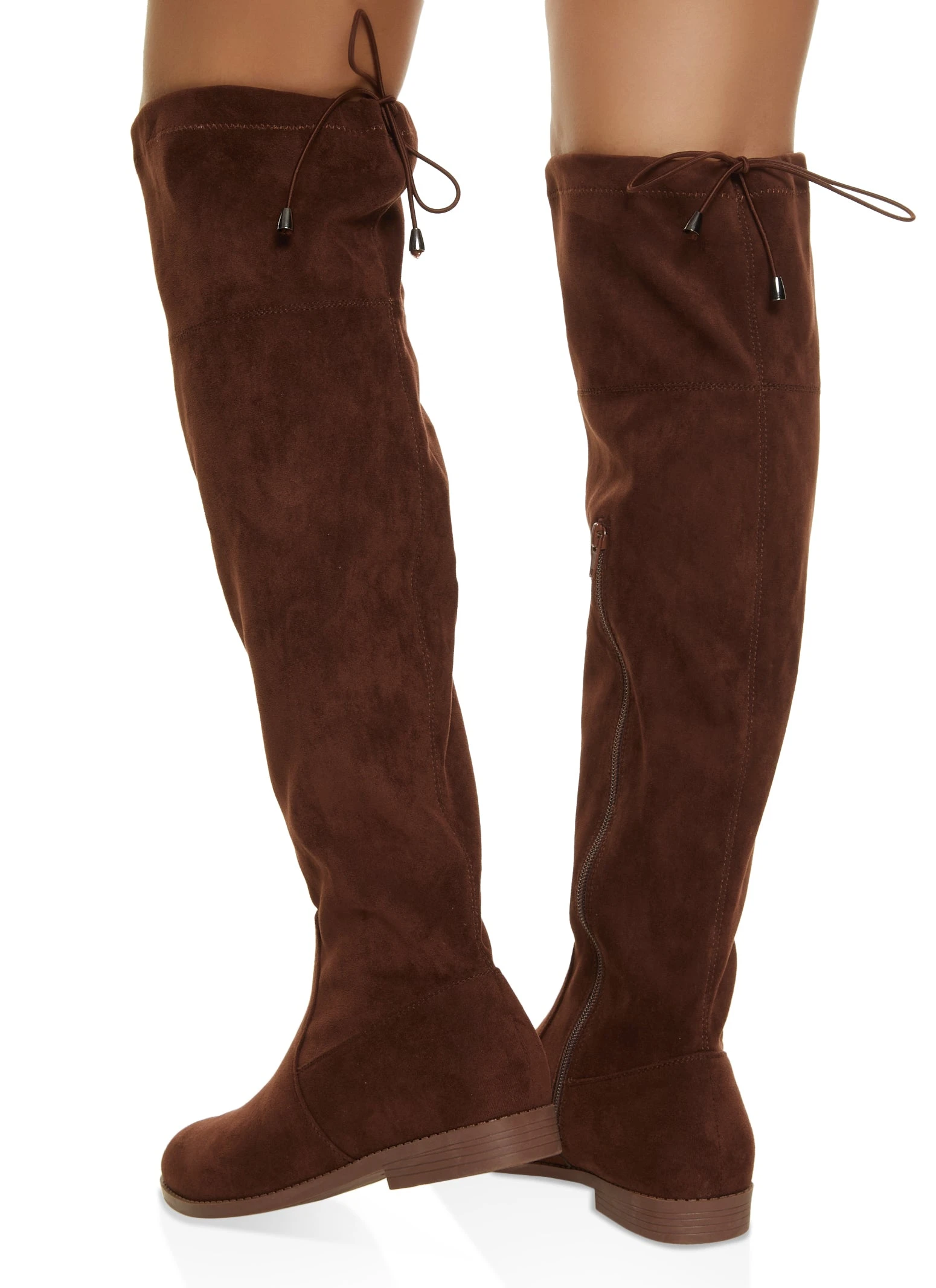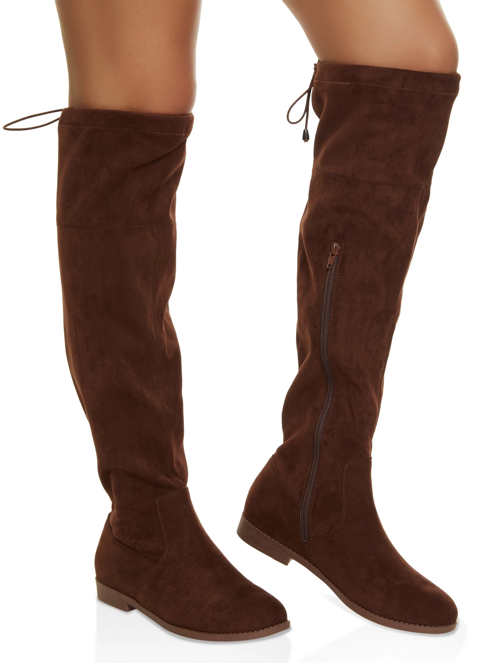 Solid Drawstring Tall Boots – BROWN
