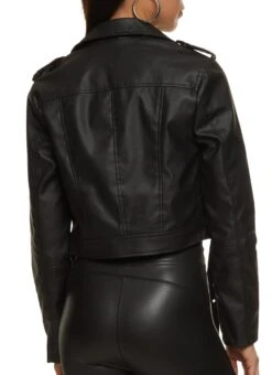 Solid Faux Leather Moto Jacket – BLACK