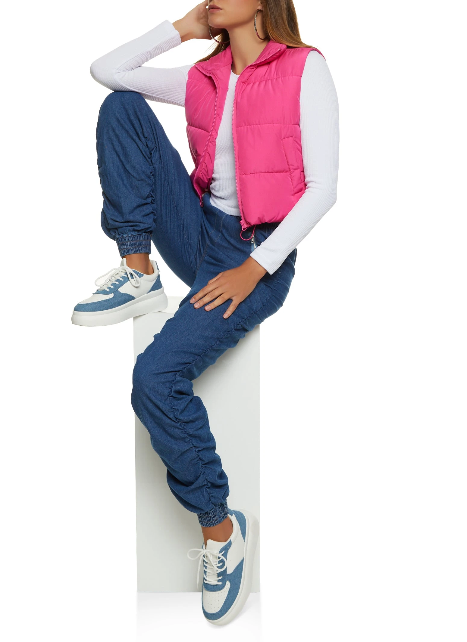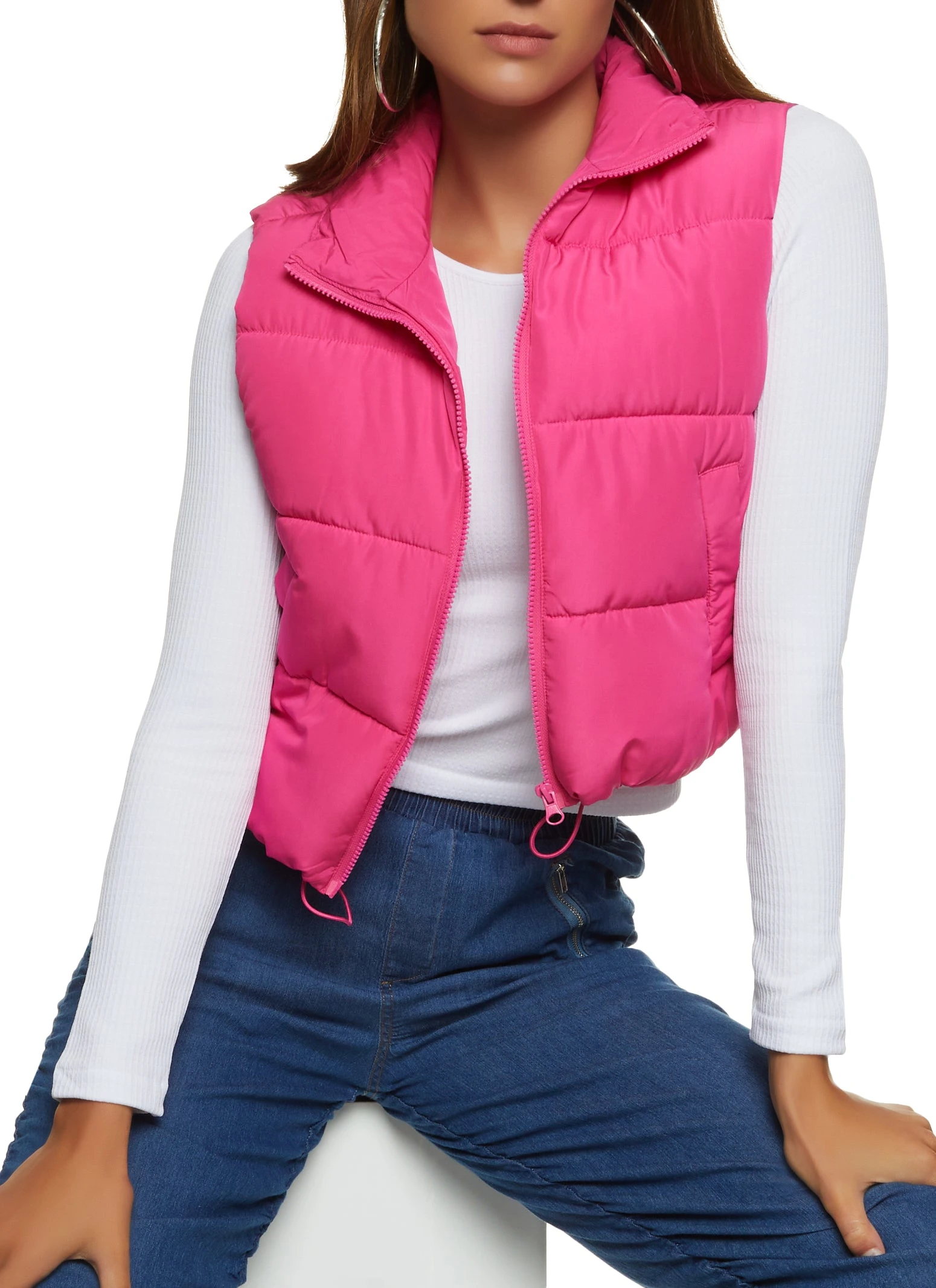 Solid Nylon Puffer Vest – PINK