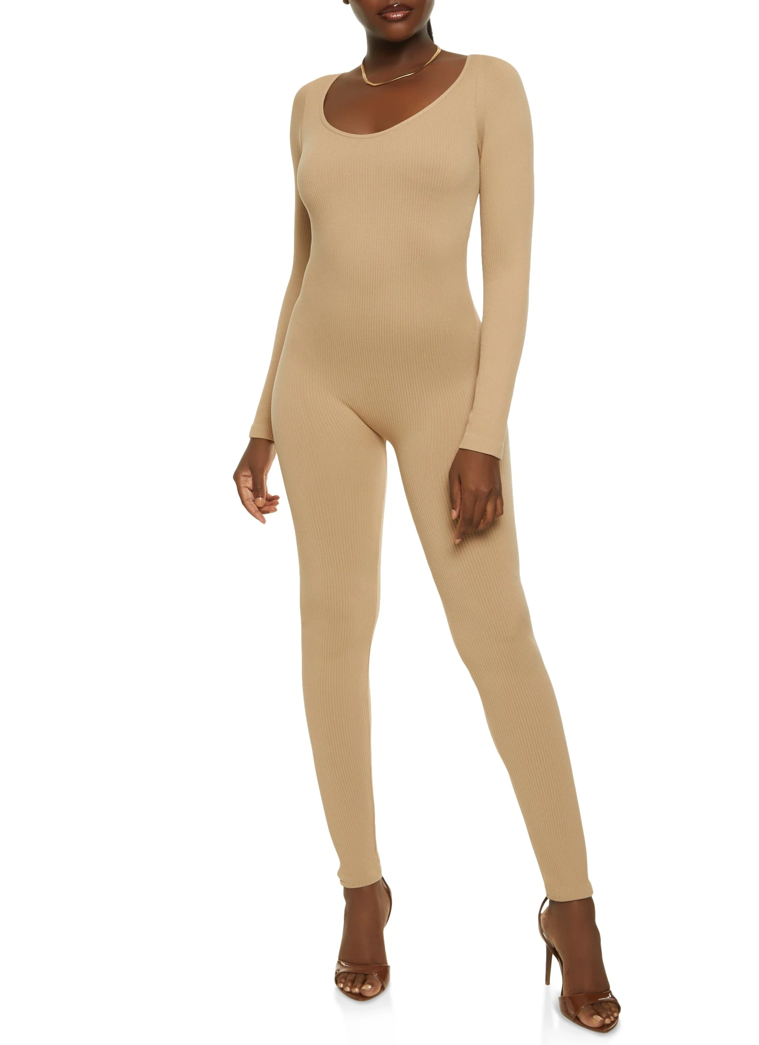 Solid Ribbed Seamless Jumpsuit – NUDE