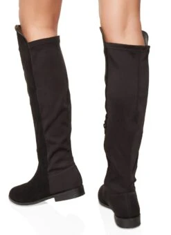 Solid Round Toe Tall Boots – BLACK SUEDE