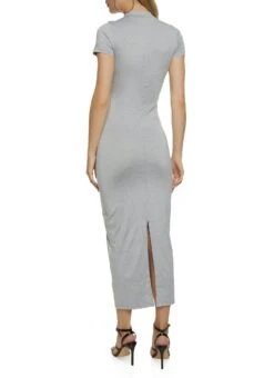 Solid Short Sleeve Mock Neck Maxi Dress – GRAY