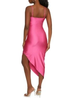 Spandex Ruched Side Asymmetrical Midi Dress – FUCHSIA