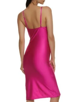 Spandex Ruched Side Slit Midi Dress – FUCHSIA