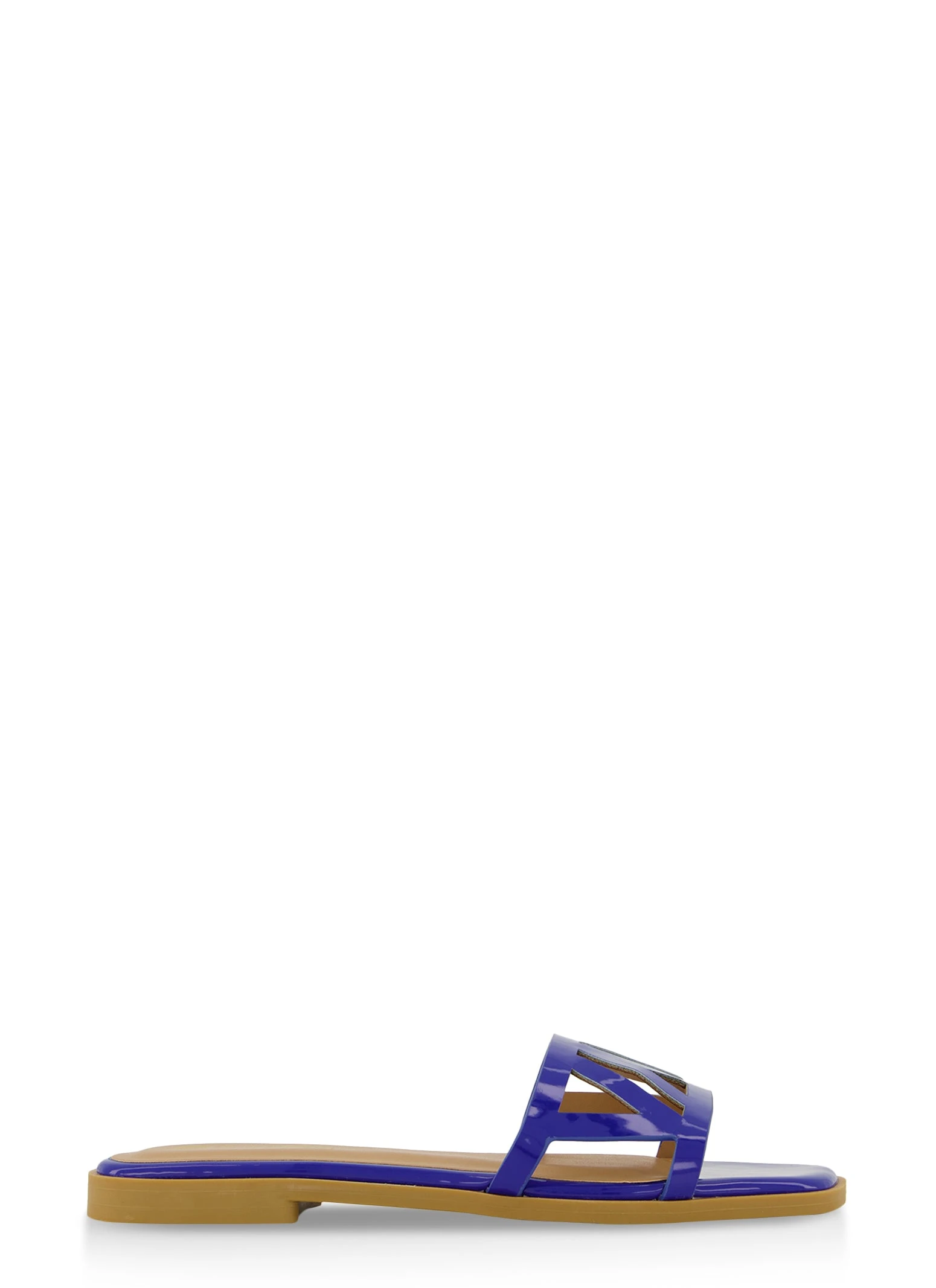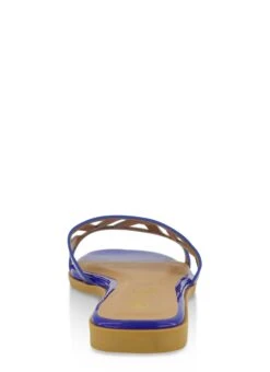 Square Toe Cut Out Band Slide Sandals – BLUE PATENT