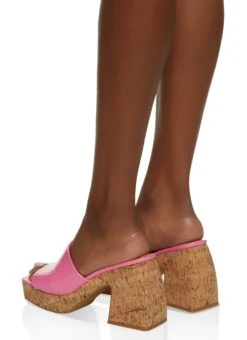 Square Toe Platform Block Heel Slide Sandals – PINK