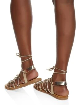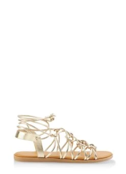 Strappy Lace Up Sandals – GOLD