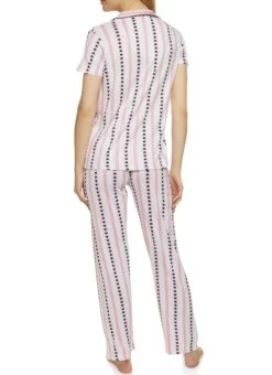 Striped Heart Print Notch Collar Pajama Shirt and Pants – IVORY