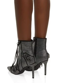 Studded Pointed Toe Buckle Detail Ankle Boots – BLACK SUEDE