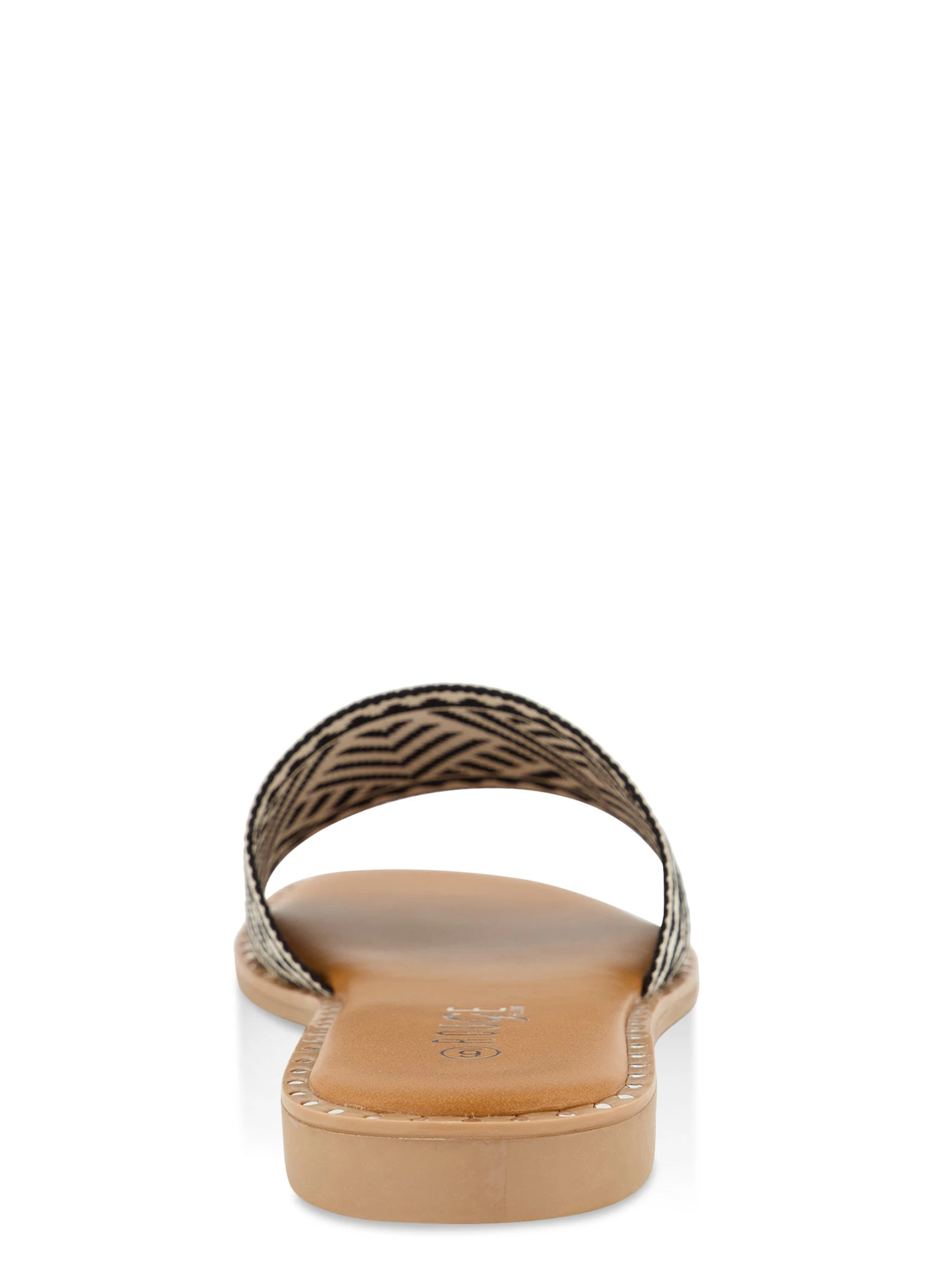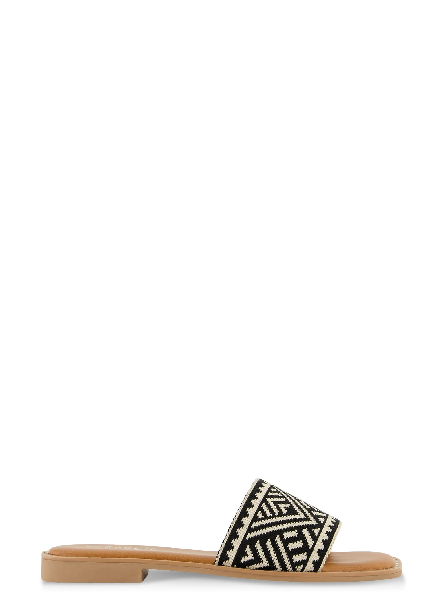 Studded Trim Aztec Band Slide Sandals – BLACK