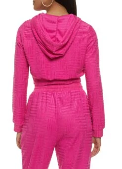 Terry Cloth Zip Front Cropped Hooded Sweatshirt – FUCHSIA