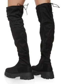 Tie Back Lug Sole Over the Knee Boots – BLACK SUEDE