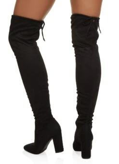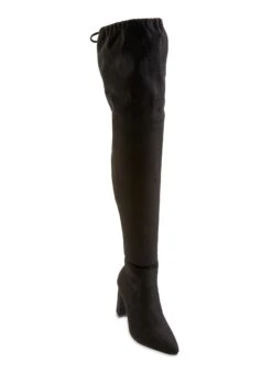 Tie Back Over the Knee Pointed Toe Boots – BLACK SUEDE