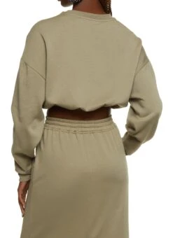 Toggle Drawstring Hem Cropped Sweatshirt – OLIVE