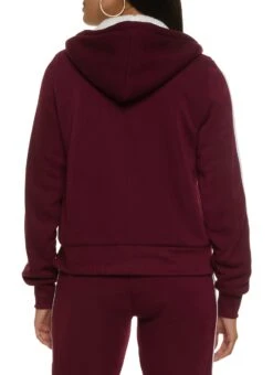 Varsity Stripe Zip Front Hoodie – BURGUNDY
