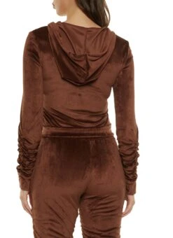 Velour Ruched Hoodie – BROWNÂ