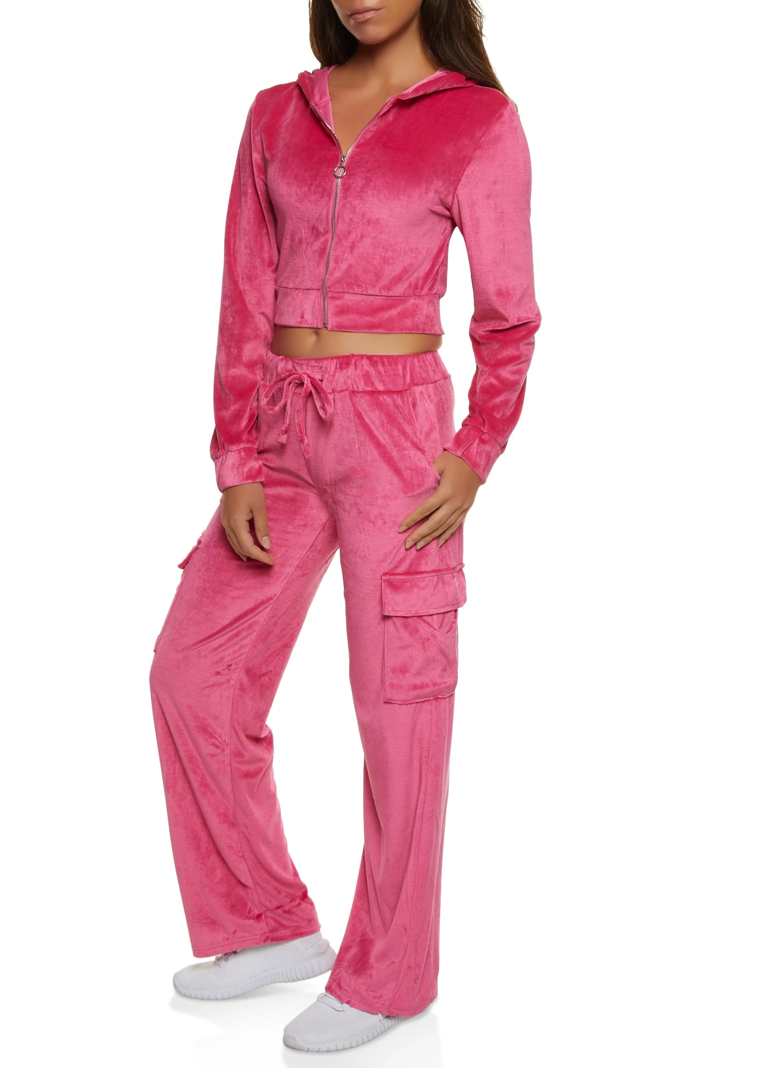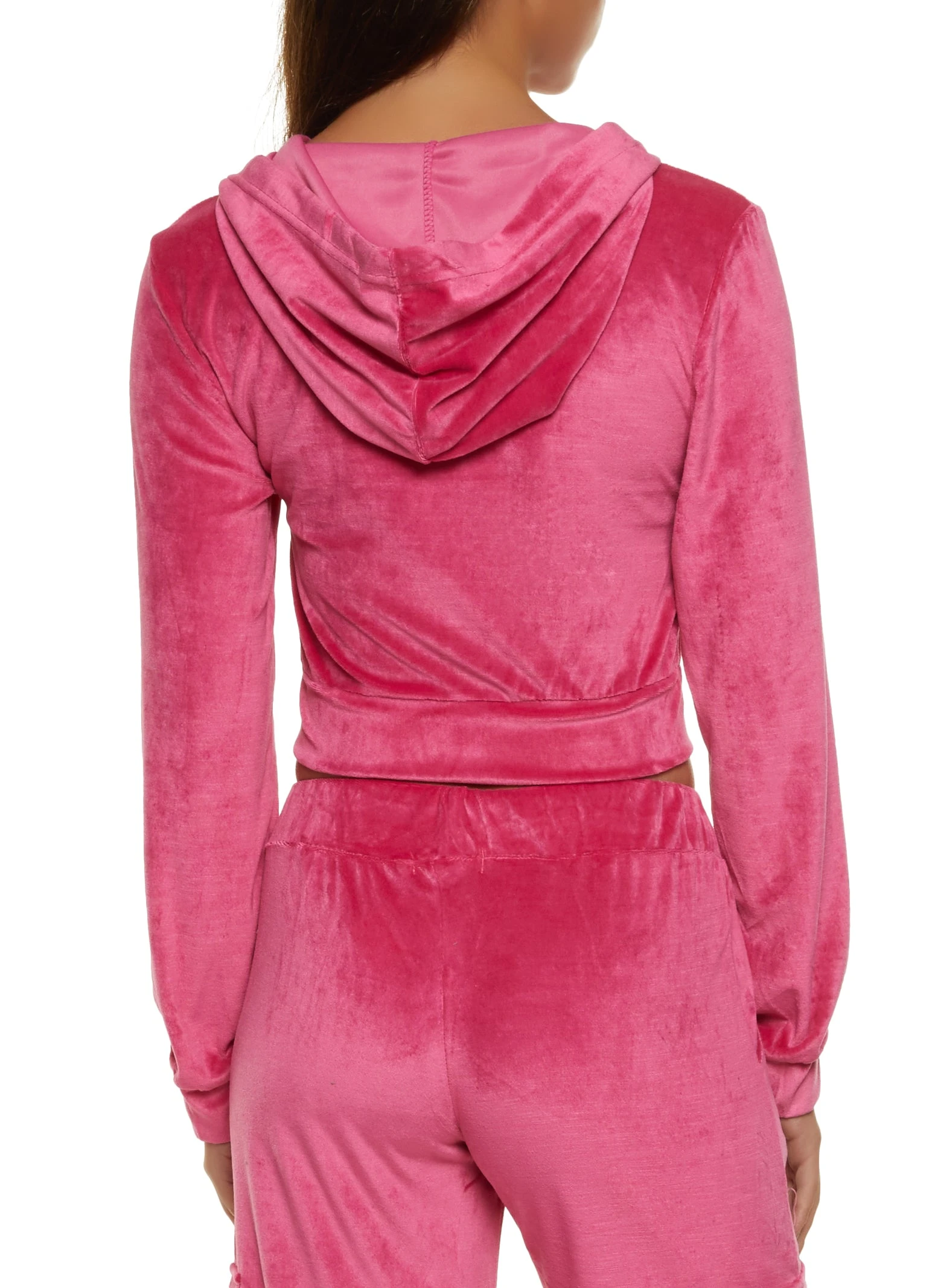 Velour Zip Up Cropped Hoodie – FUCHSIA