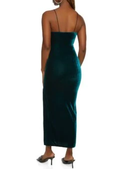 Velvet Scoop Neck Side Slit Maxi Dress – GREEN