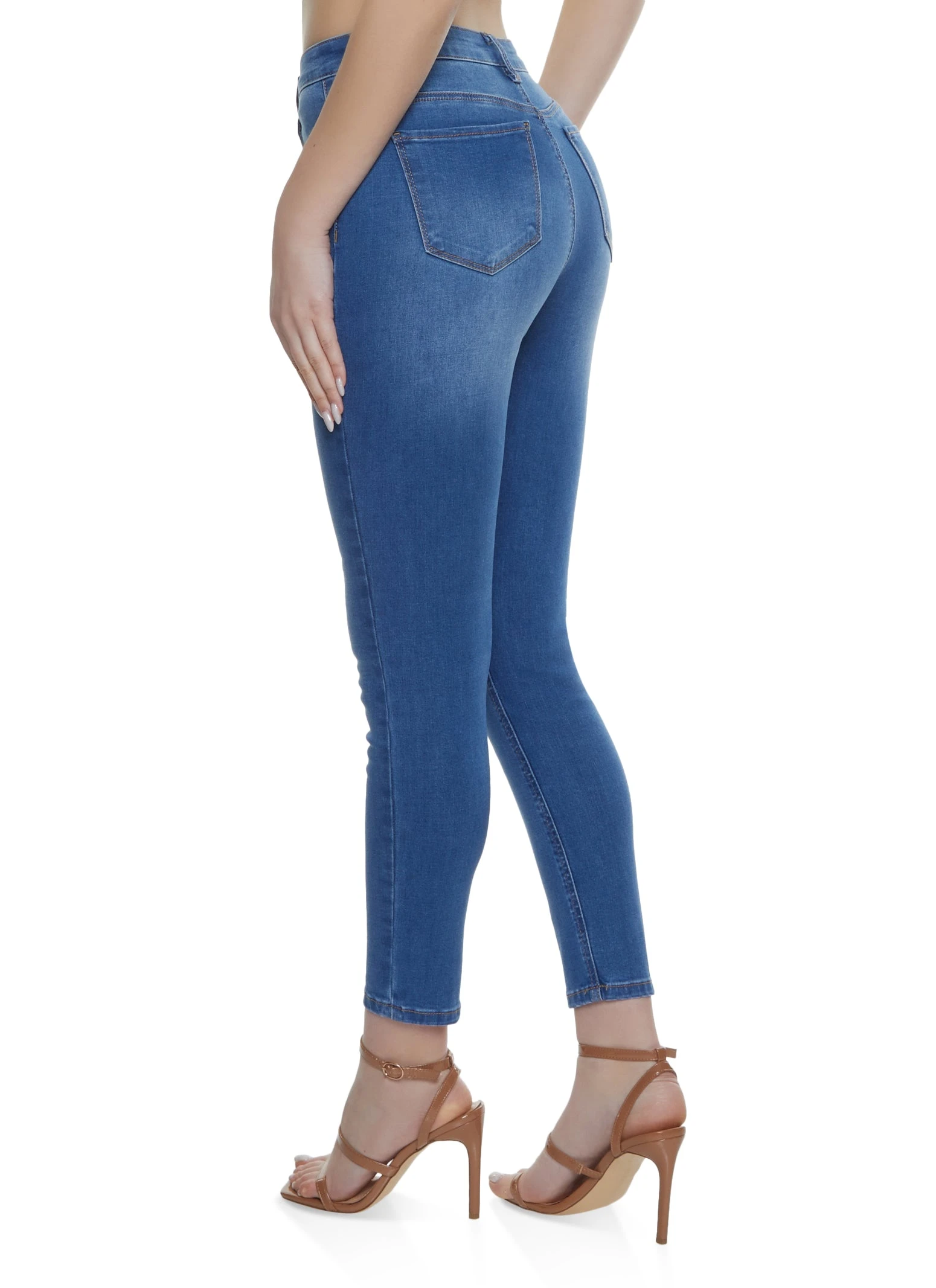 WAX Button Front Skinny Jeans – MEDIUM WASH