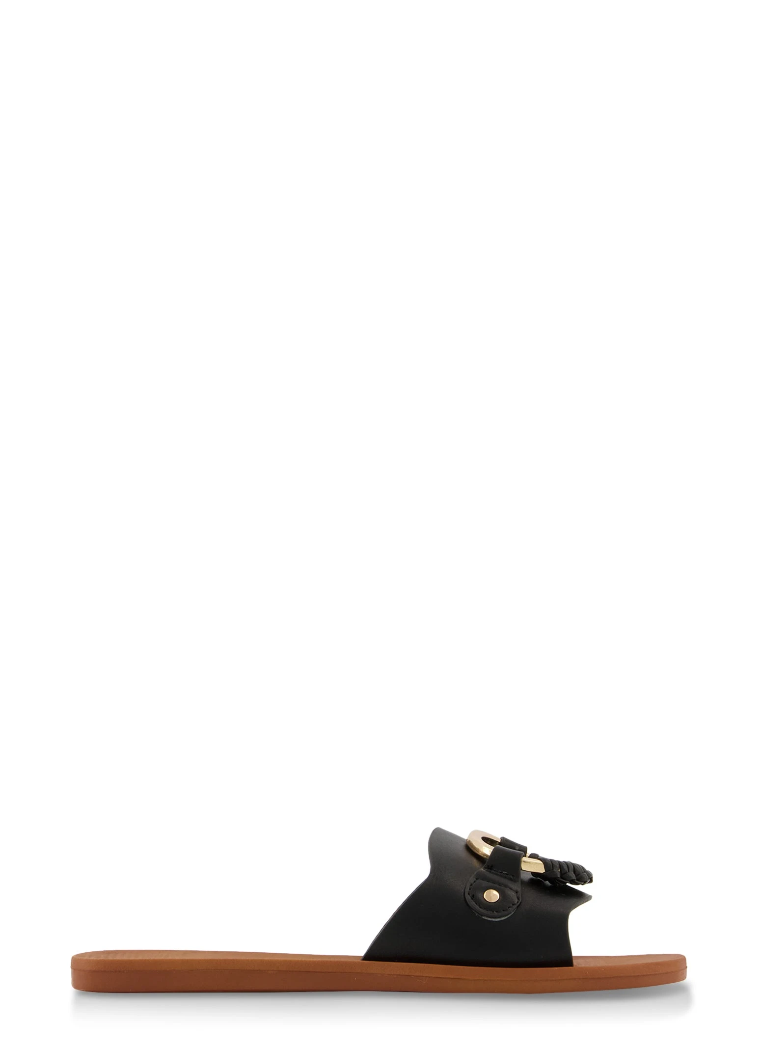 Woven Pendant Flat Sandals – BLACK