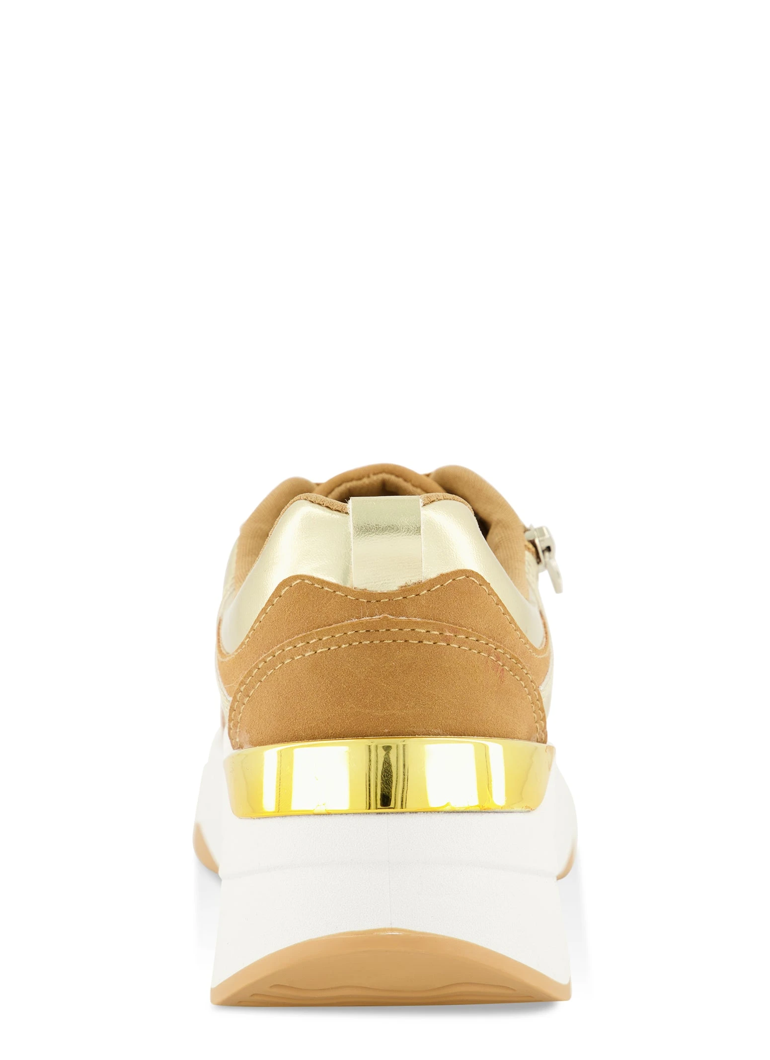 Zip Detail Lace Up Platform Athletic Sneakers – TAN