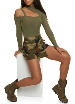 Printed Mesh Mock Neck Puff Sleeve Blouse
