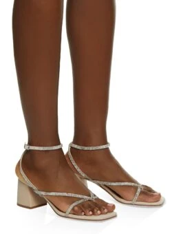 Rhinestone Strap Block Heel Sandals
