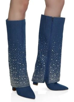 Rhinestone Studded Fold Over Tall Boots