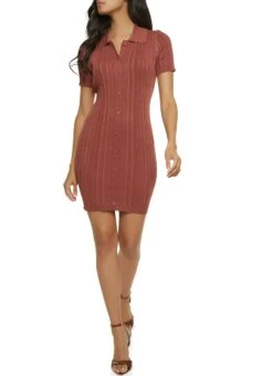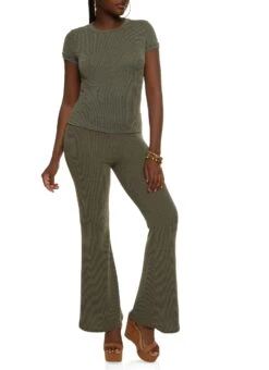 Rib Knit Crew Neck Ruched Side Midi Dress
