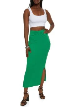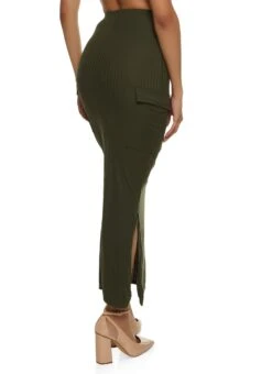 Ribbed Knit High Waist Cargo Maxi Skirt